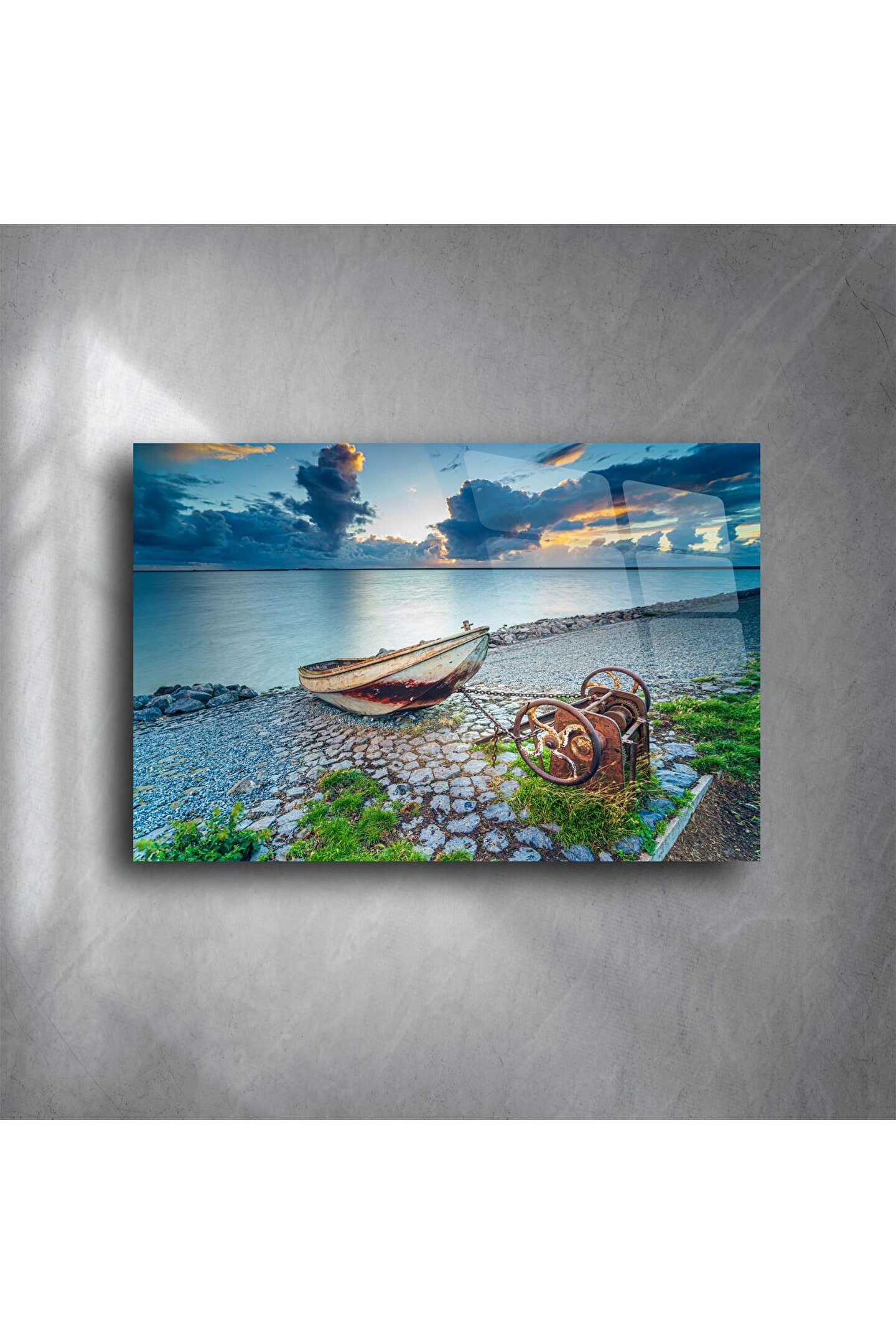 Doğanın huzur verici tonlarını yansıtan bu çarpıcı cam tablo, paslanmış kayık ve gökyüzünü delen bulutlarla dolu dramatik bir günbatımını gözler önüne seriyor. Kristal netliğindeki temperli cam yüzey üzerine yüksek çözünürlükte basılan bu eser, modern yaşam alanlarına sofistike bir karakter katar. Kayalık sahil, nostaljik zincir ve sanatsal dokunuşlarla birleşerek duvarınıza adeta bir hikâye fısıldar.