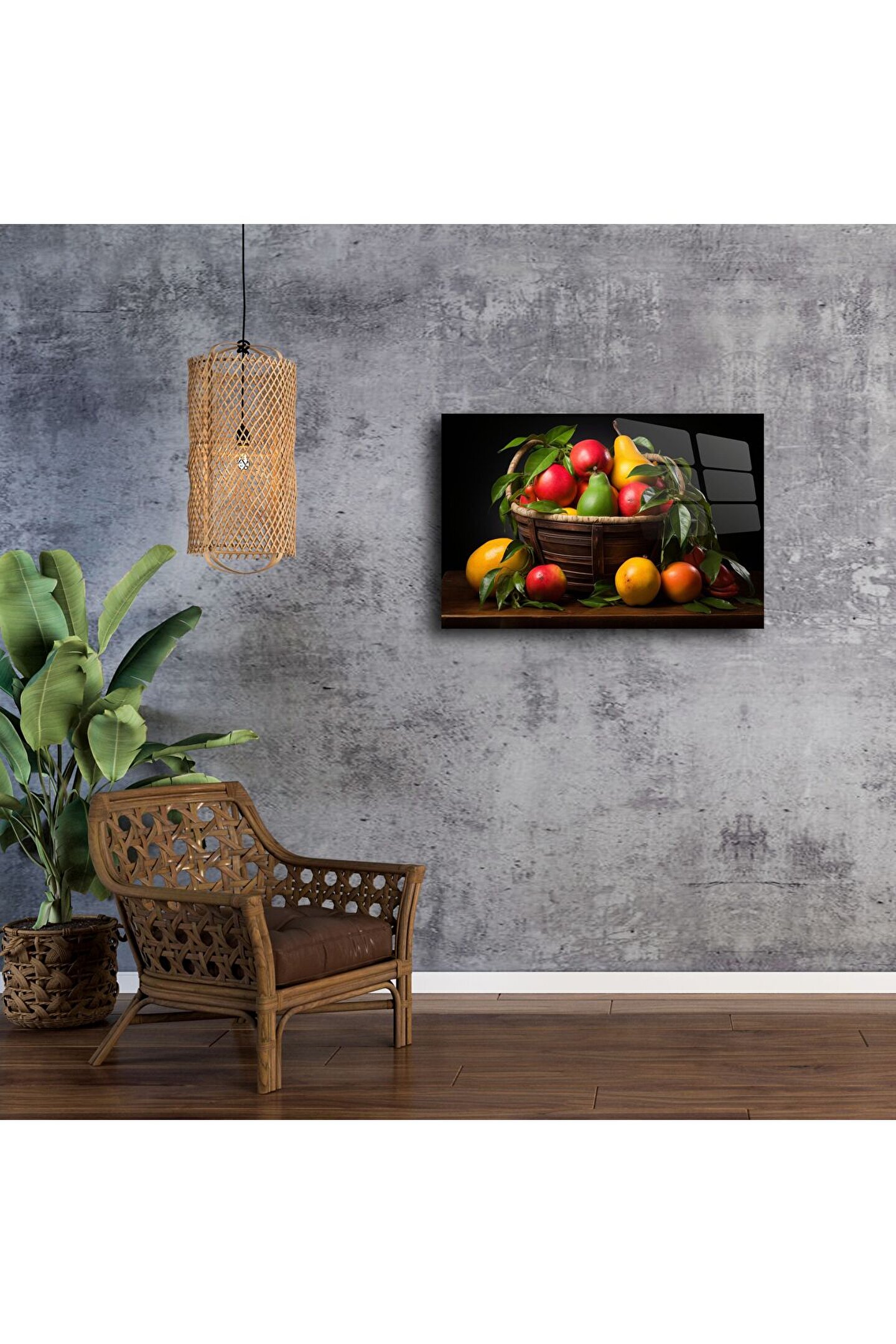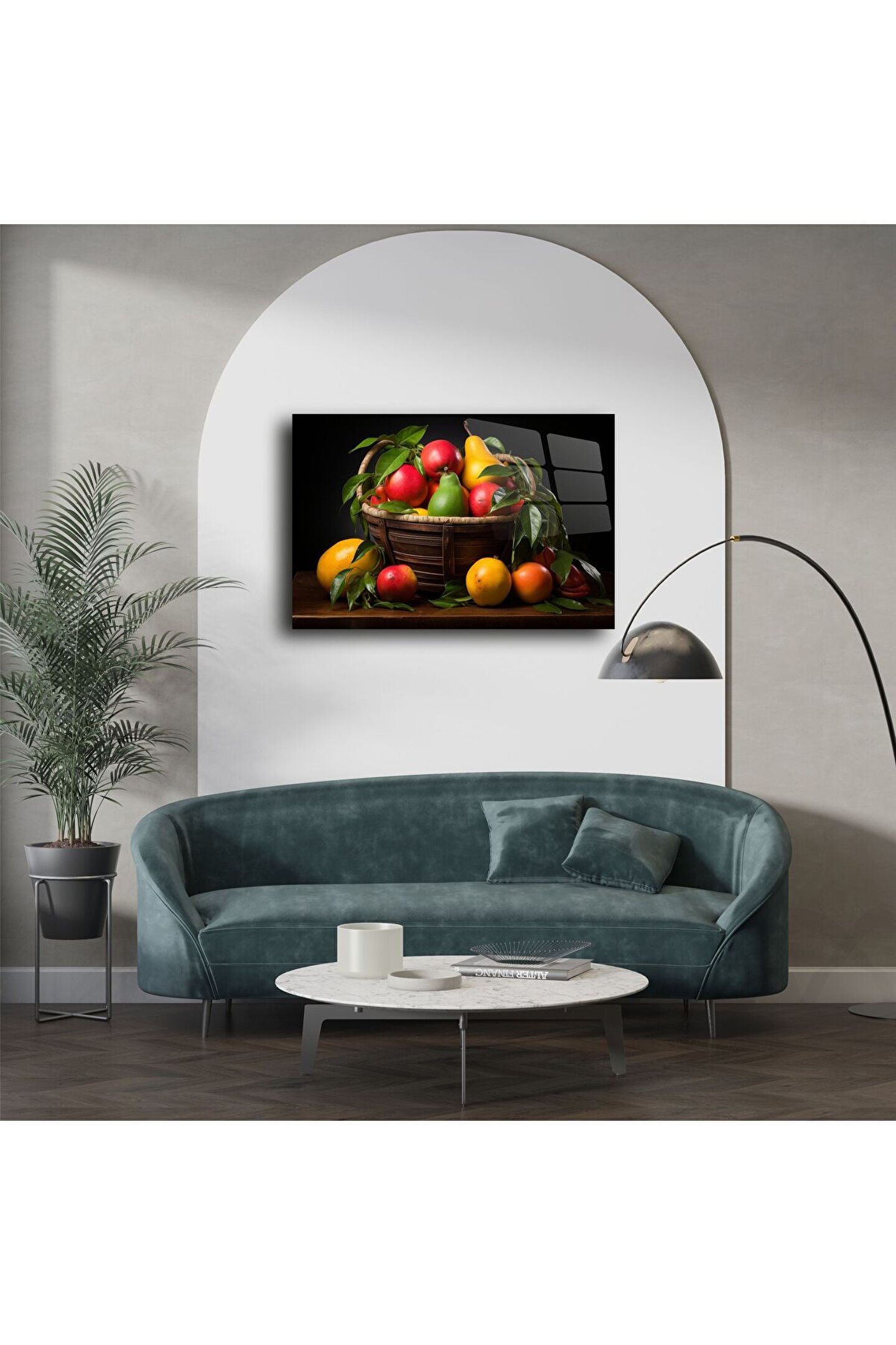 LEYLASER Canlı Tropikal Meyve Sepeti Cam Tablo