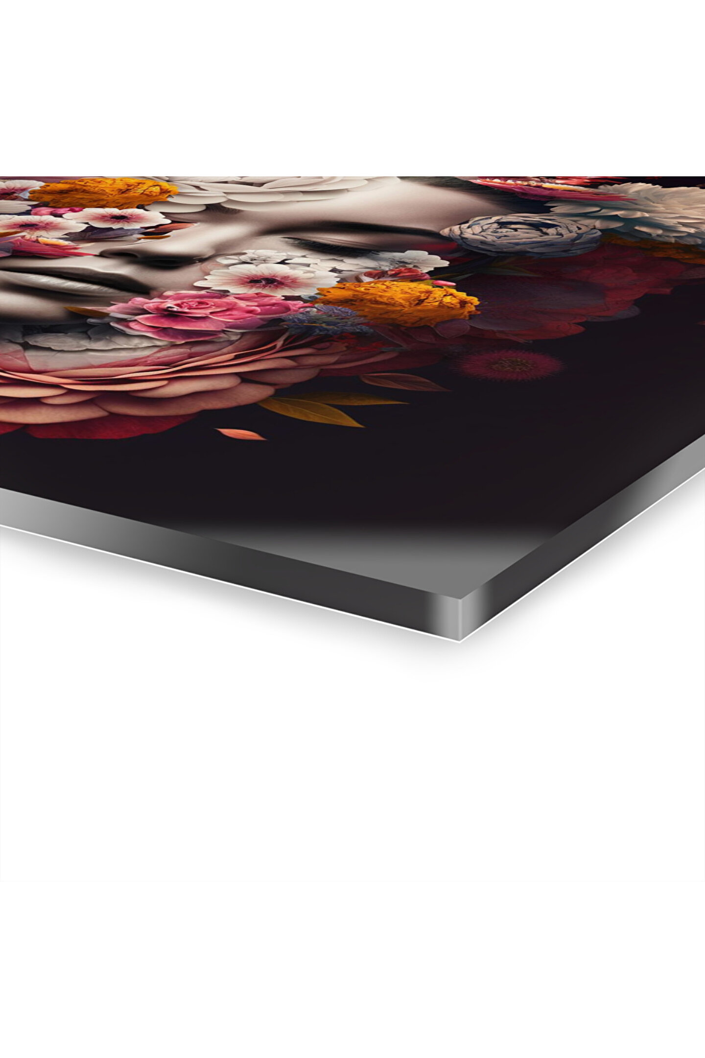 LEYLASER Çiçekli Kız Cam Tablo Duvar Dekoru model 2