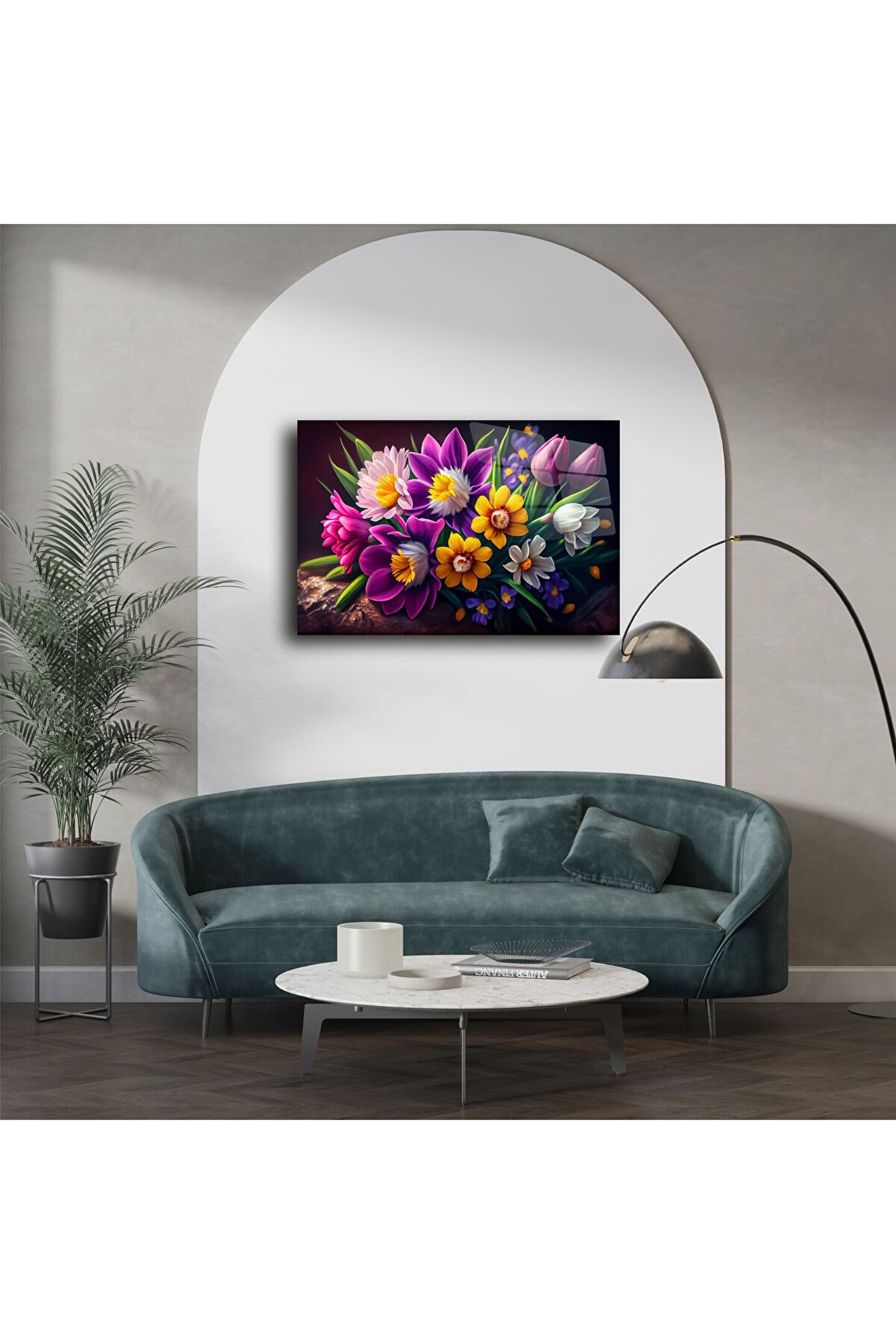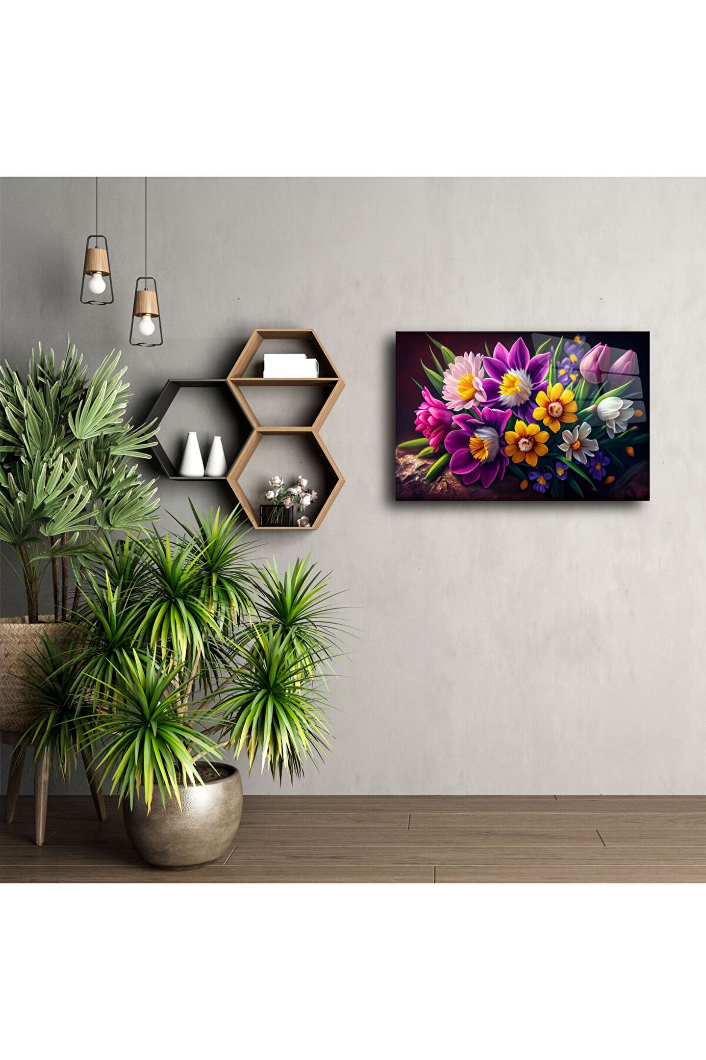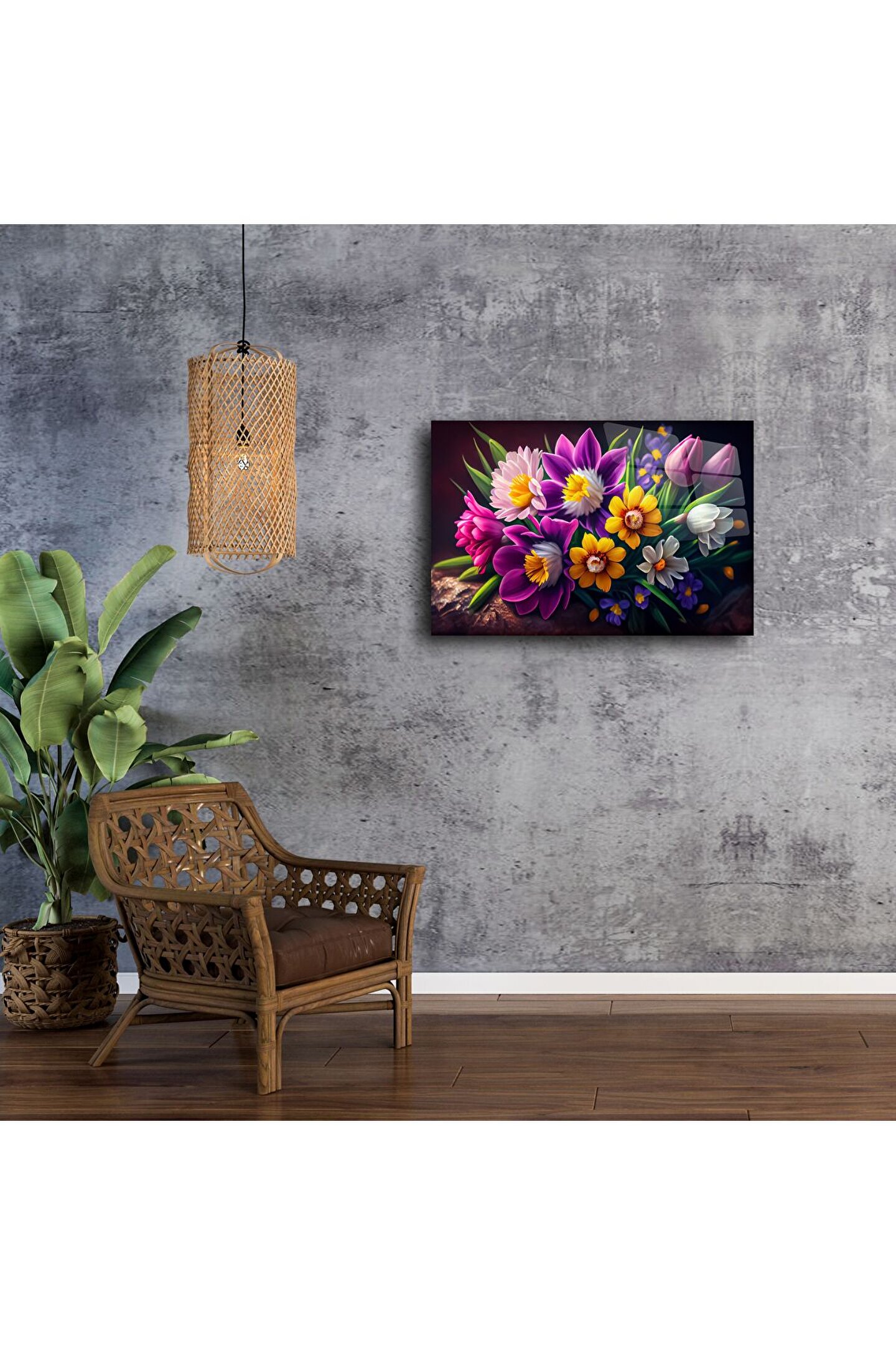 LEYLASER Çok Renkli Bahar Çiçekleri Cam Tablo