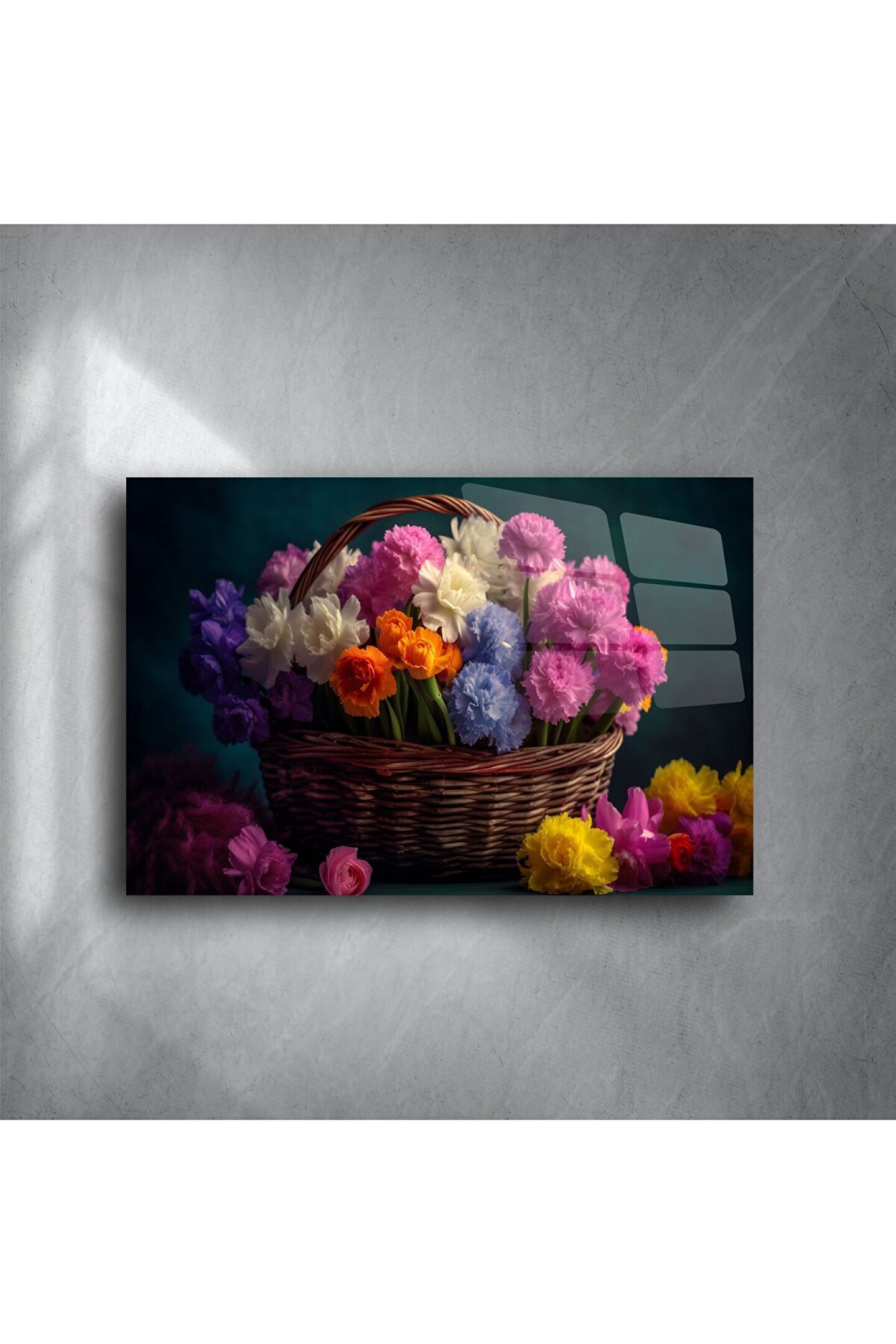 LEYLASER Dekoratif Renkli Çiçek Sepeti Cam Tablo