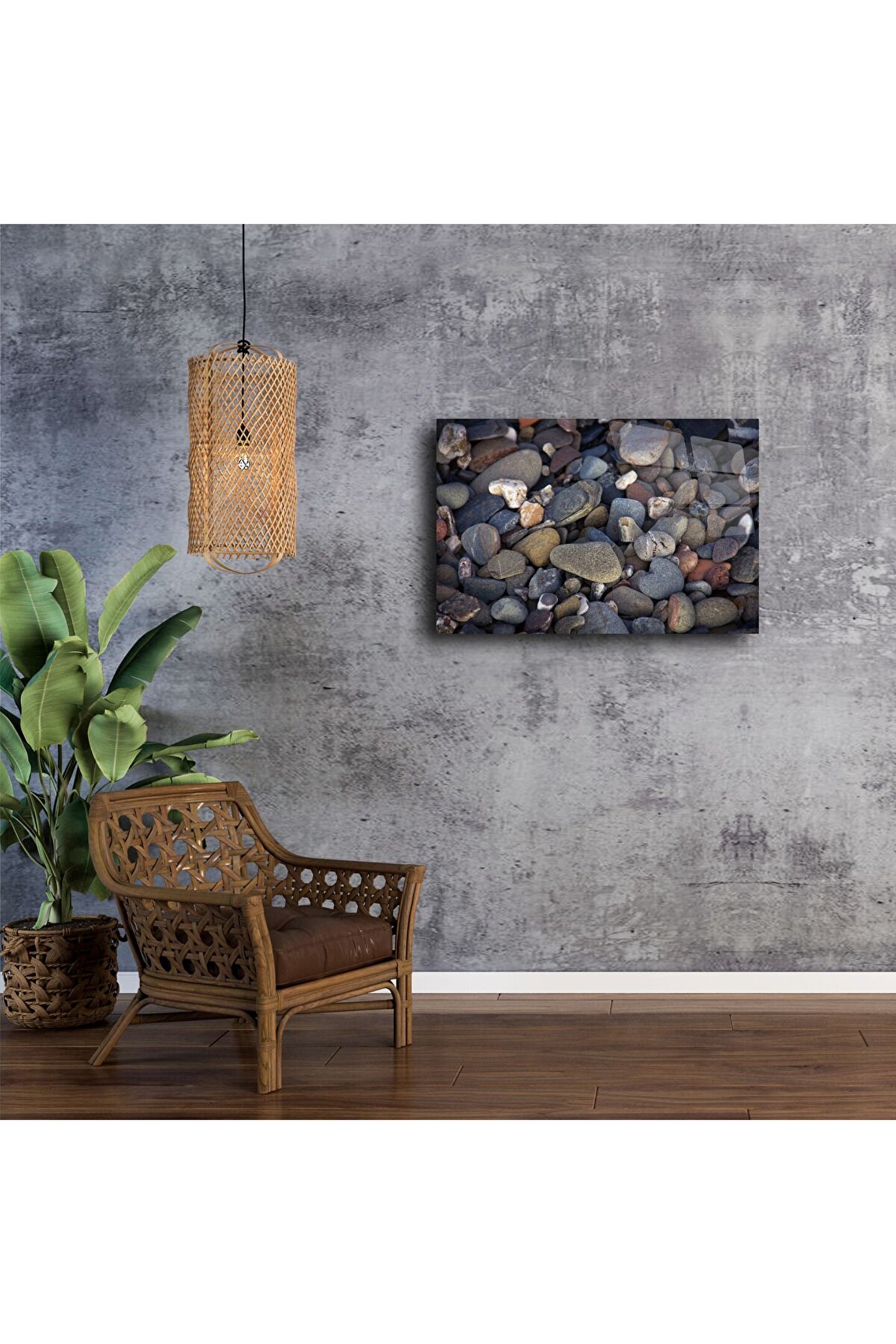 Bu koyu renkli çakıl taşı desenli cam tablo, doğal dengenin ve içsel huzurun modern cam estetiğiyle birleştiği özgün bir sanat eseridir. Toprak tonlarının baskın olduğu bu görsel, odanıza sakinlik, derinlik ve doğallık katar. Yüksek çözünürlüklü taş dokusu, temperli cam yüzeyde etkileyici bir kontrastla hayat bulur.