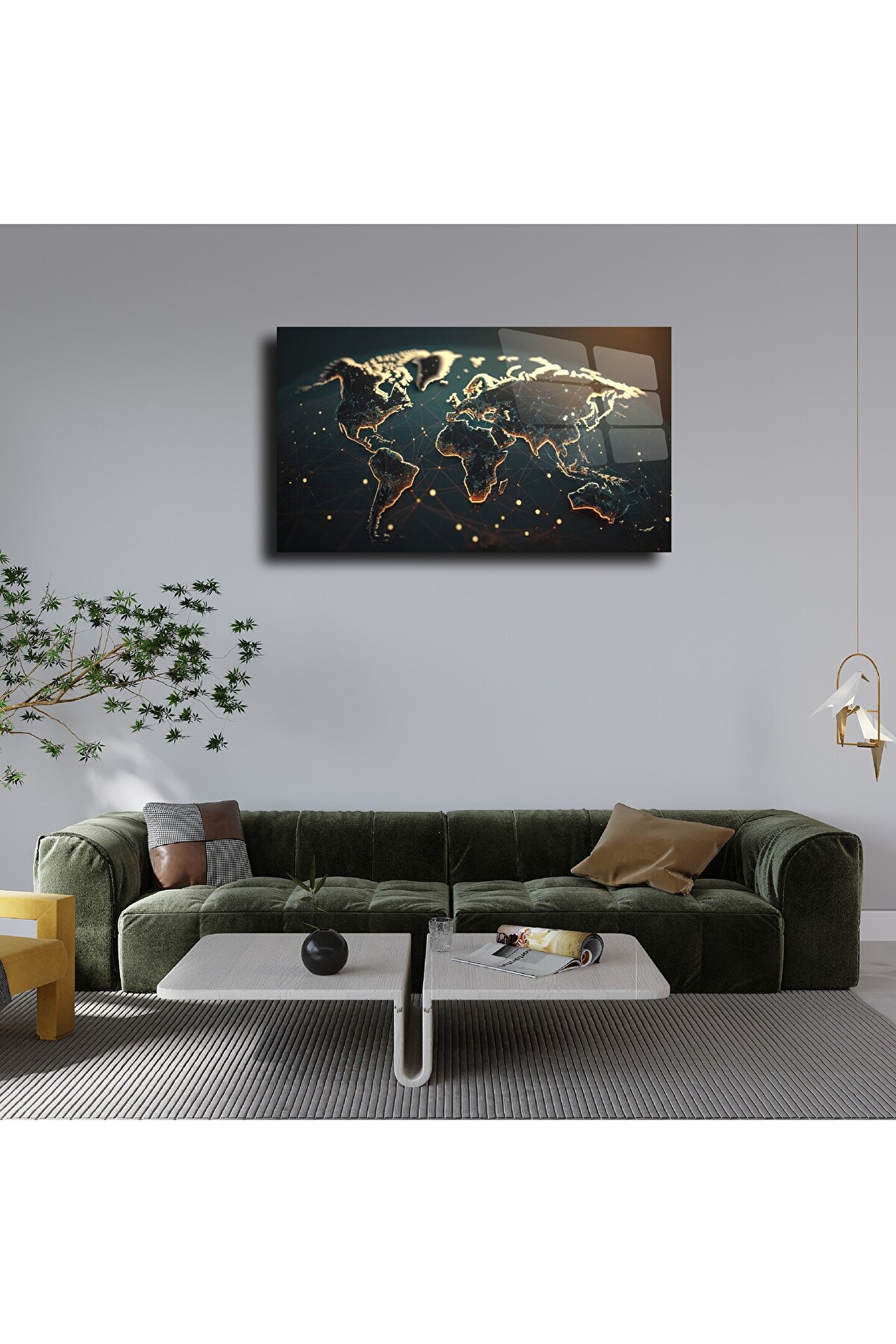 LEYLASER Dünya Temalı Cam Tablo Duvar Dekoru 3