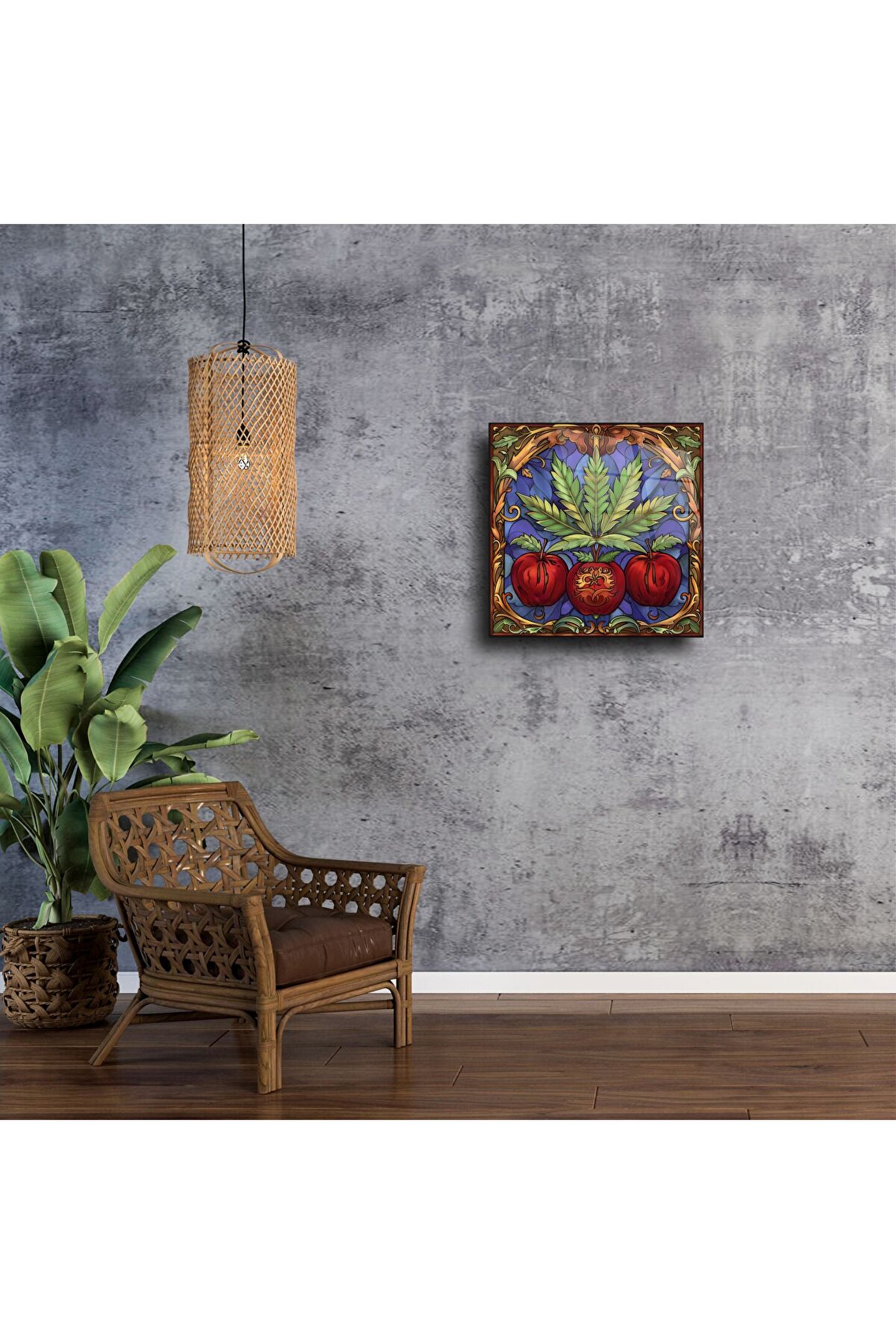 LEYLASER Elma ve Bitki Desenli Duvar Sanatı