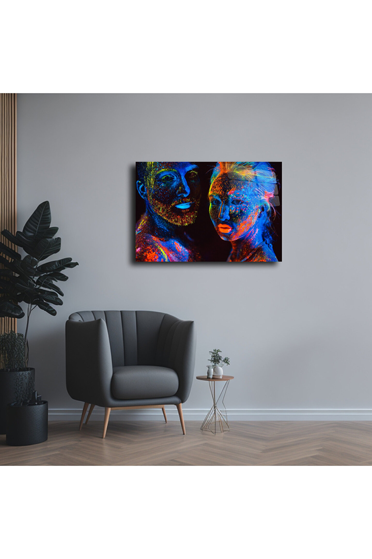 LEYLASER Fosfor Renkli İnsan Portreleri Cam Tablo Duvar Dekoru