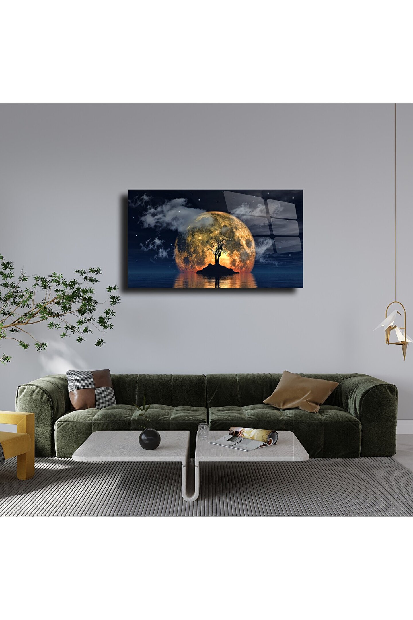 LEYLASER Gece Manzarası Cam Tablo Duvar Dekoru