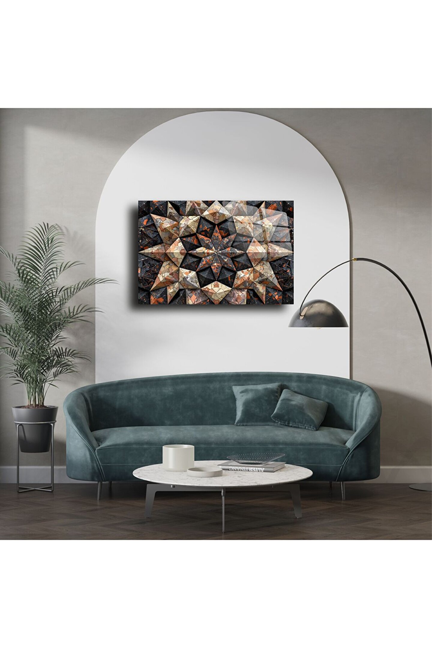 Yoğun dokulu mozaik stili detaylar, hem klasik hem modern dekorasyon stillerine uyum sağlar. Göz alıcı simetri, bakıldıkça daha fazla detay keşfetme hissi yaratır.