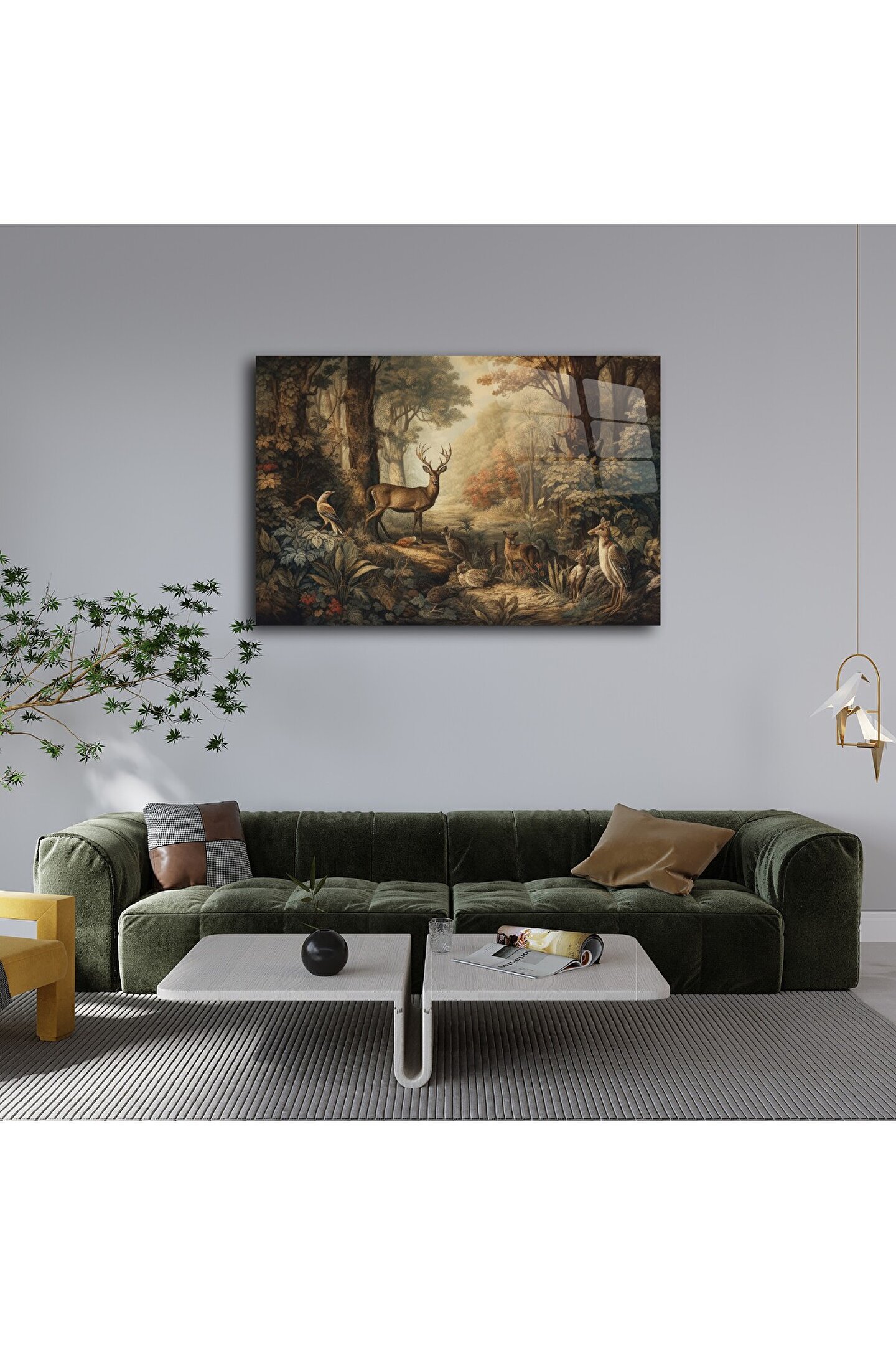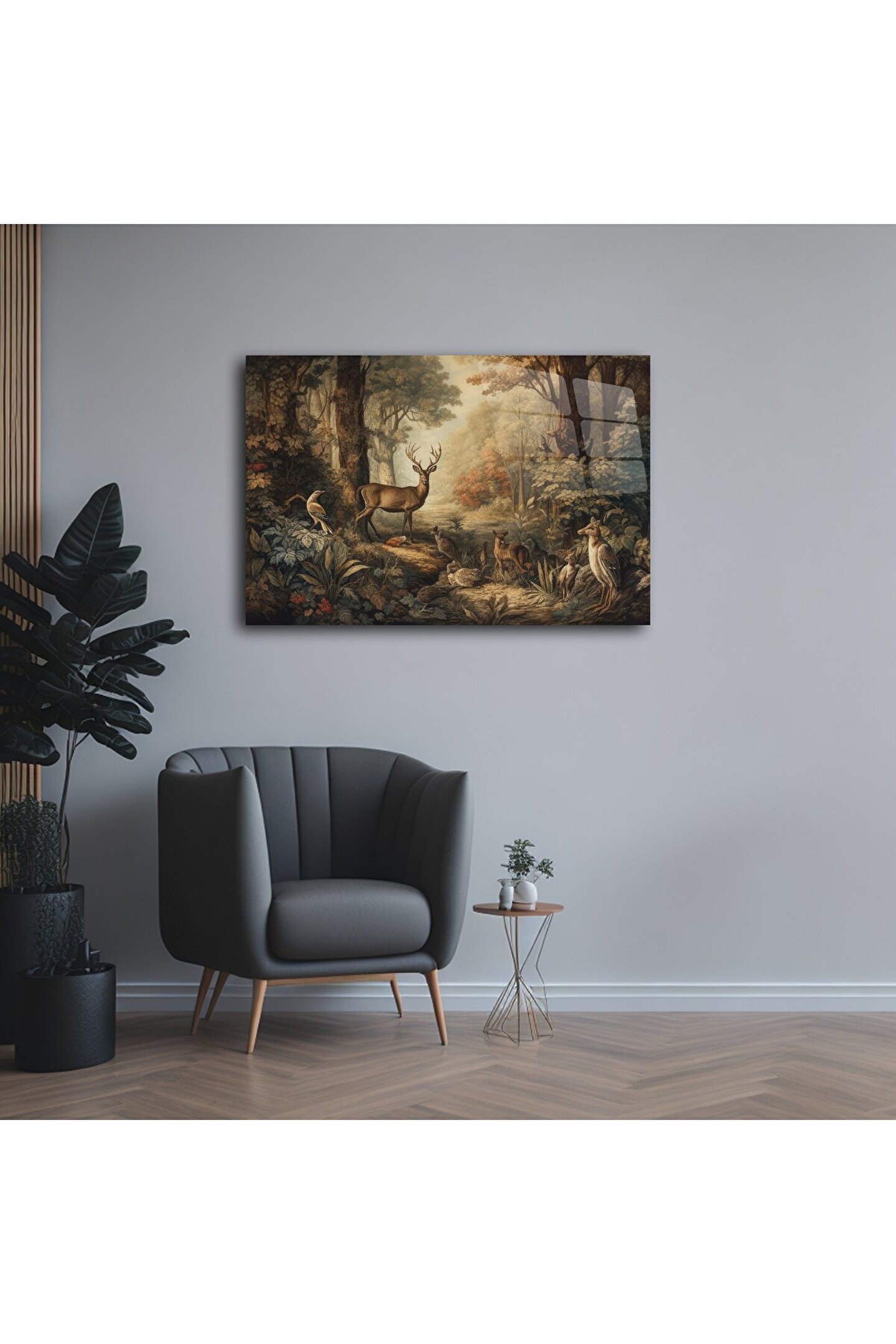 LEYLASER Geyik ve Orman Manzarası Cam Tablo Duvar Dekoru