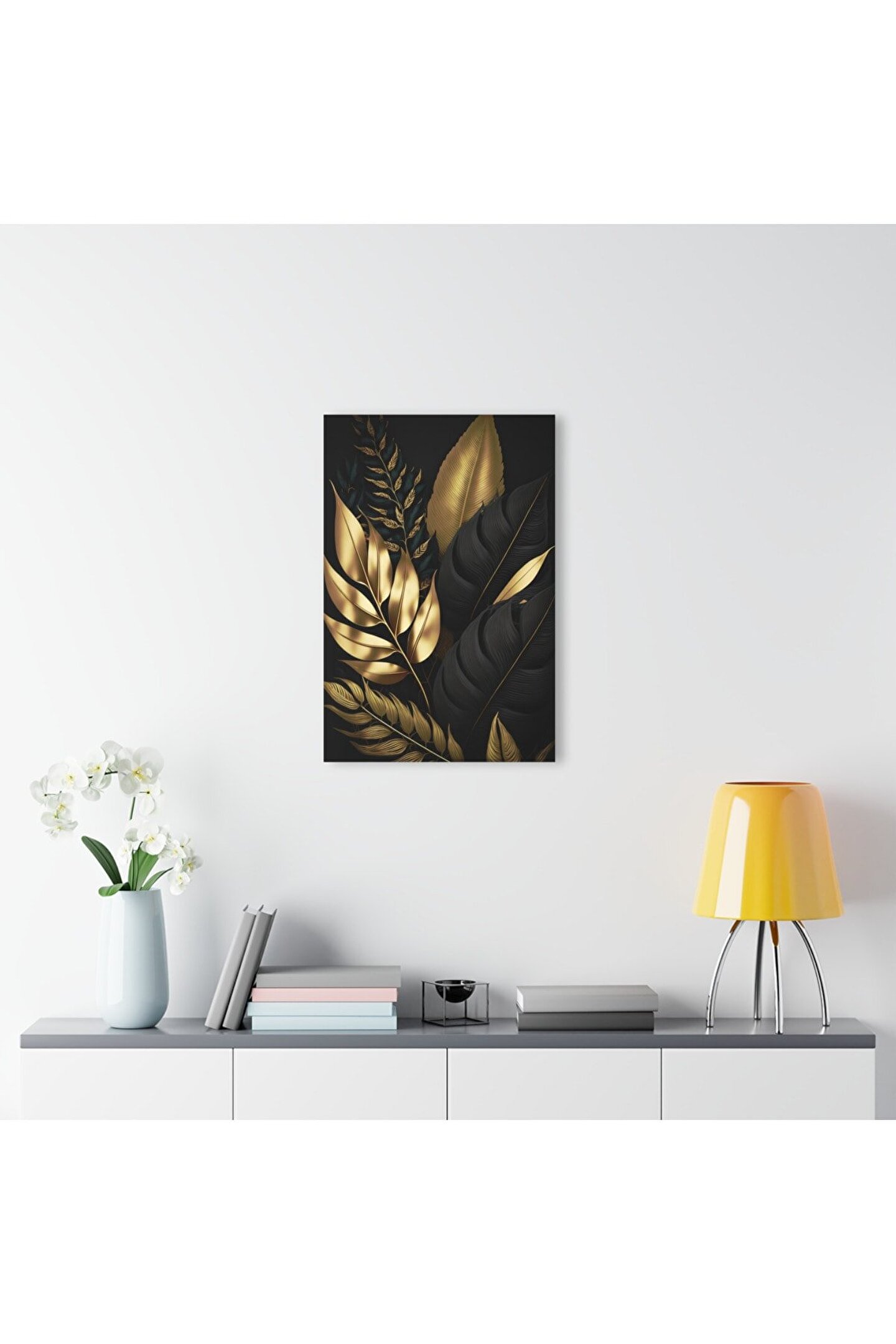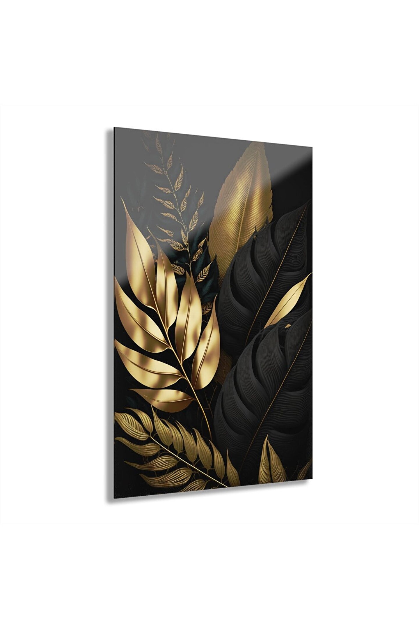 LEYLASER Gold Altın Renkli Yapraklar Cam Tablo Duvar Dekoru 2