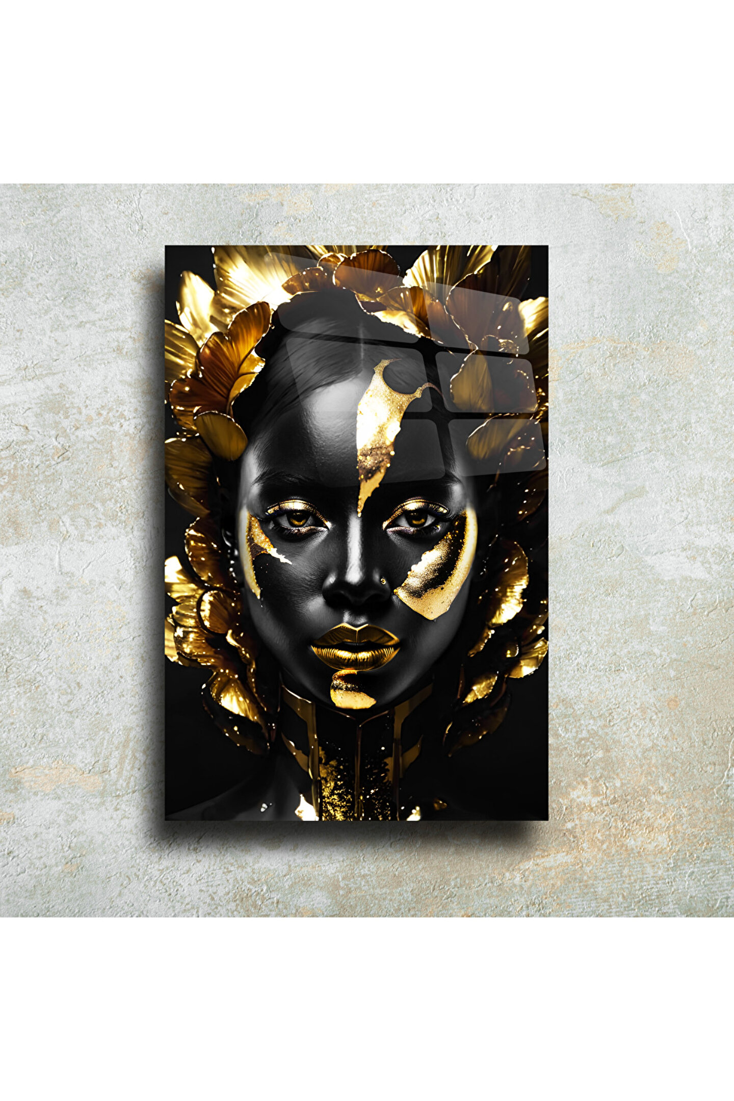 LEYLASER Gold Kadın Görseli Cam Tablo Duvar Dekoru 1
