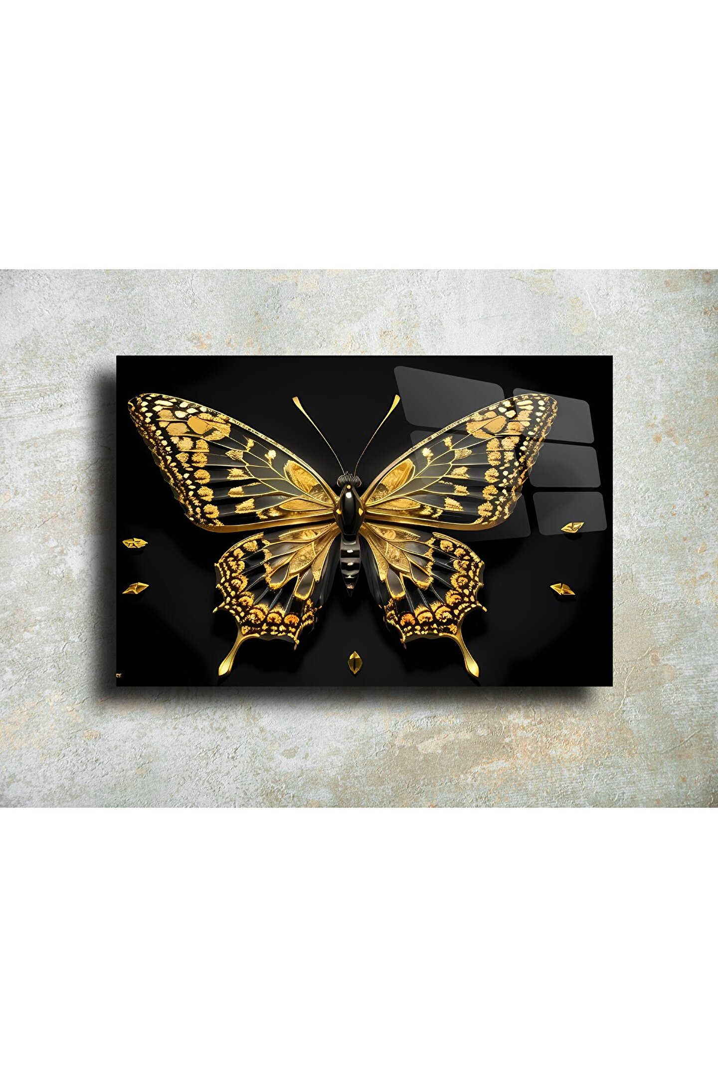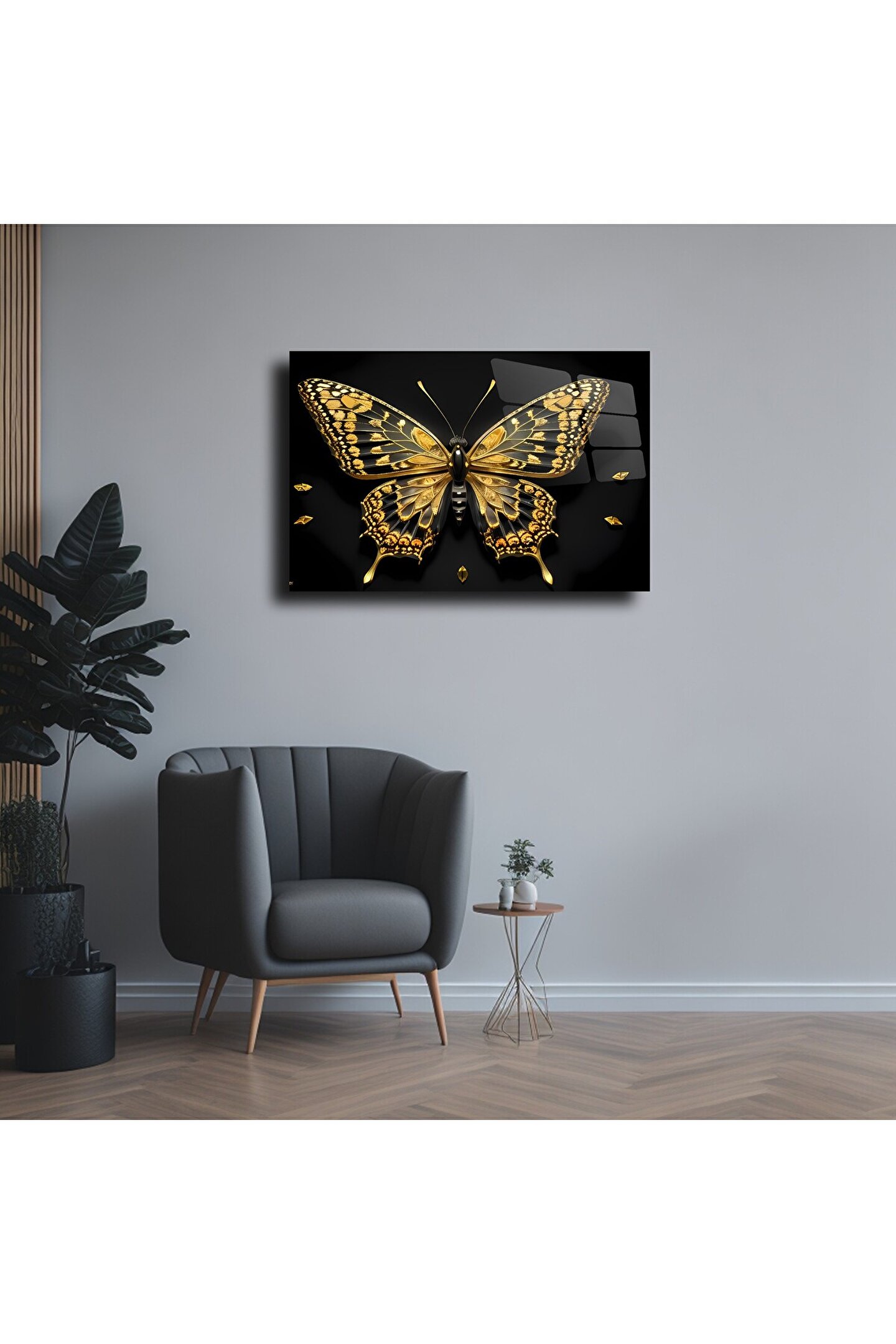LEYLASER Gold Kelebek Cam Tablo Duvar Dekoru 1