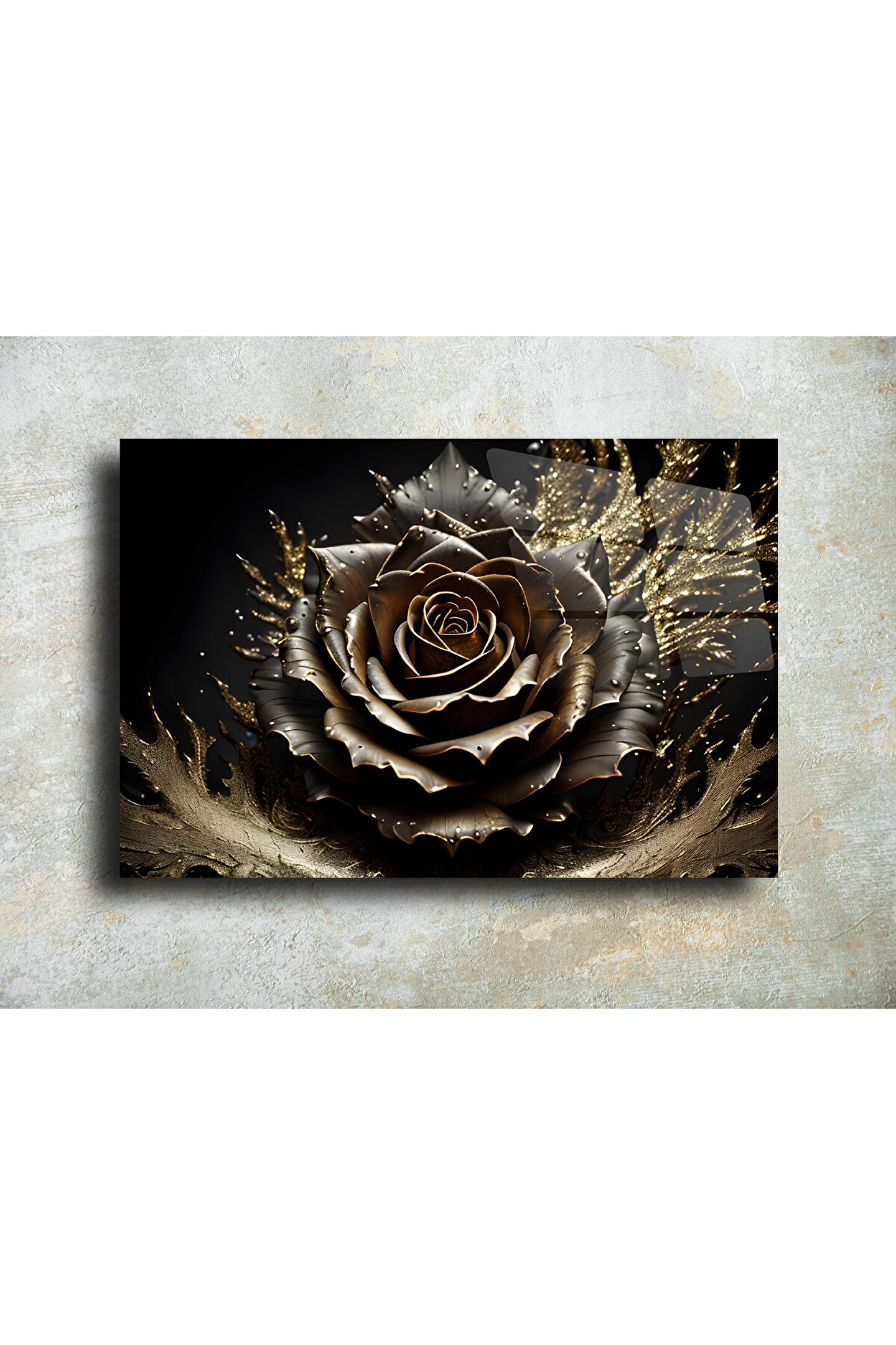 LEYLASER Gold Renkli Gül Cam Tablo Duvar Dekoru 1