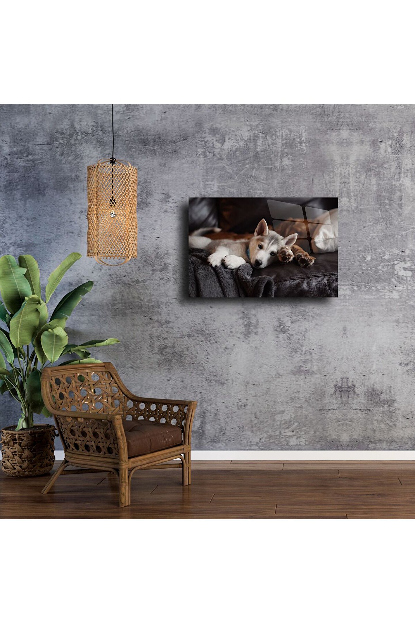 Yumuşak gri koltukta huzurla uzanmış sevimli bir husky yavrusu... Bu etkileyici fotoğraf, hayvan severlerin kalbini anında ısıtacak! Köpeğin tatlı bakışları ve zarif kompozisyonu, her ortamda iç huzur ve sıcaklık yaratır.