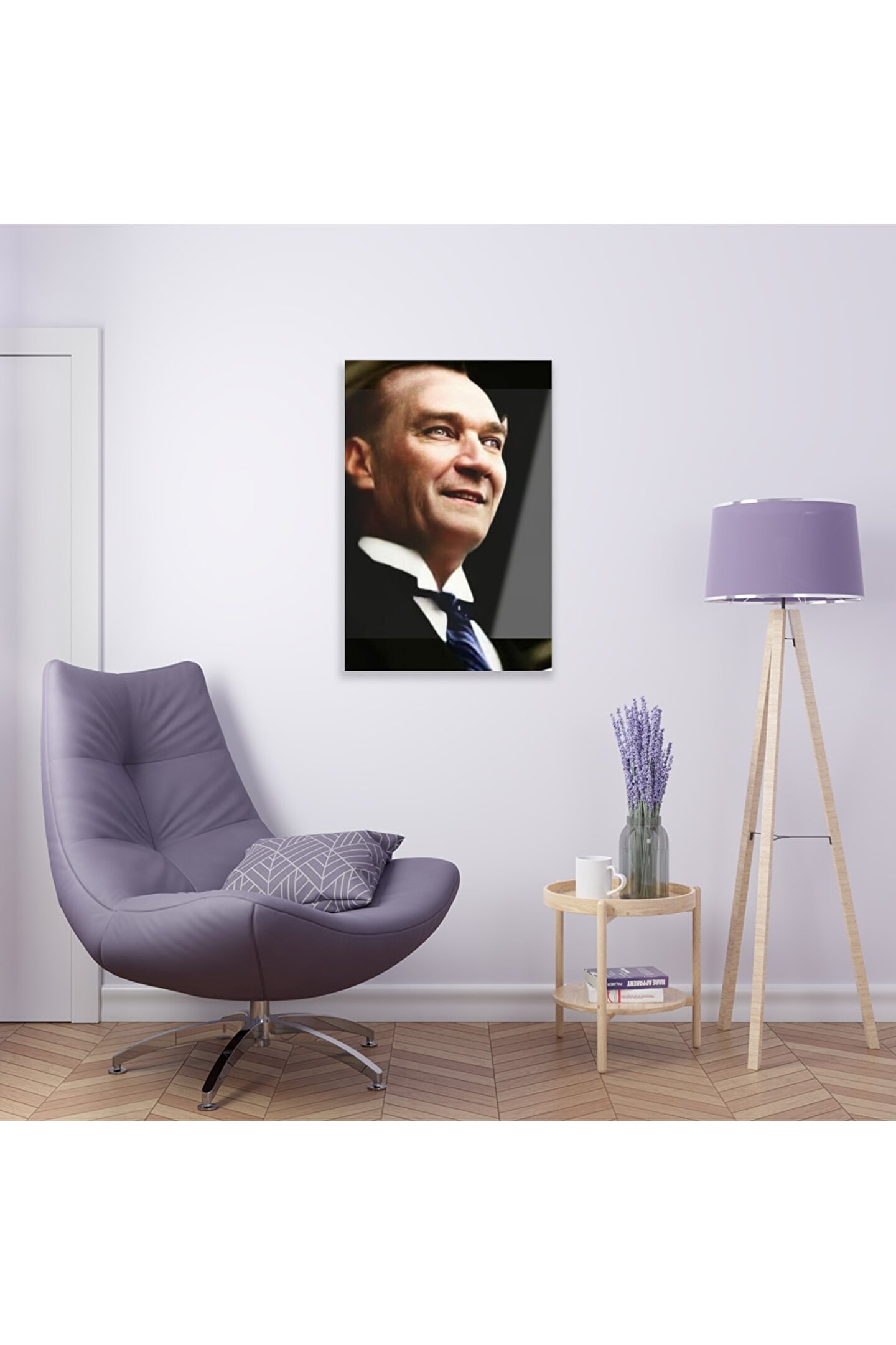 LEYLASER Gülümseyen Atatürk Cam Tablo Duvar Dekoru