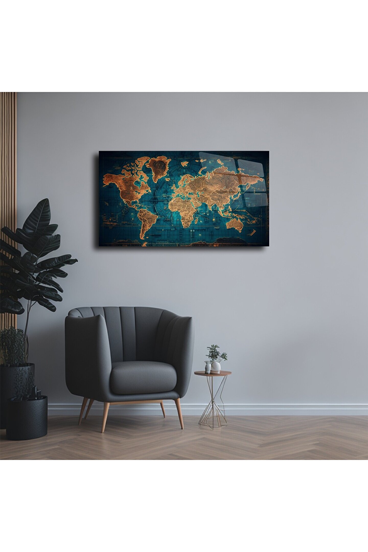 LEYLASER Harita Görseli Cam Tablo Duvar Dekoru 5