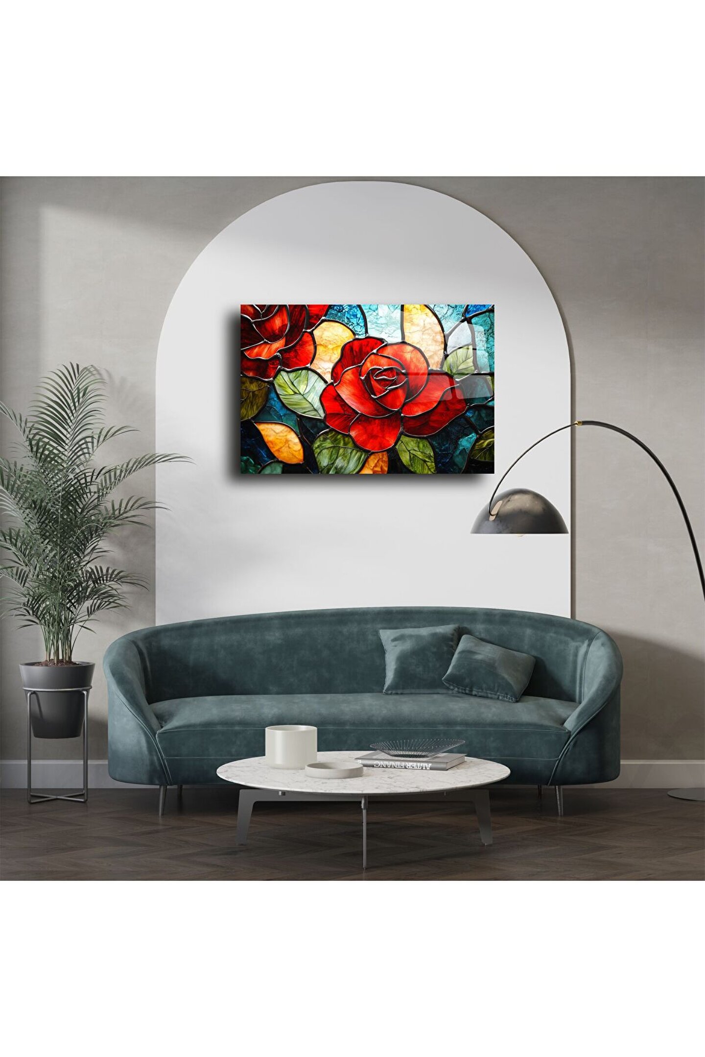 Tutkulu kırmızı güllerin vitray estetiğiyle birleştiği bu ikili cam tablo, aşkı ve zarafeti yaşam alanınıza taşıyor. Cam mozaik tekniğiyle hazırlanmış bu detaylı sanat eseri, ışıkla dans eden renkleriyle duvarınıza büyüleyici bir dokunuş katıyor.