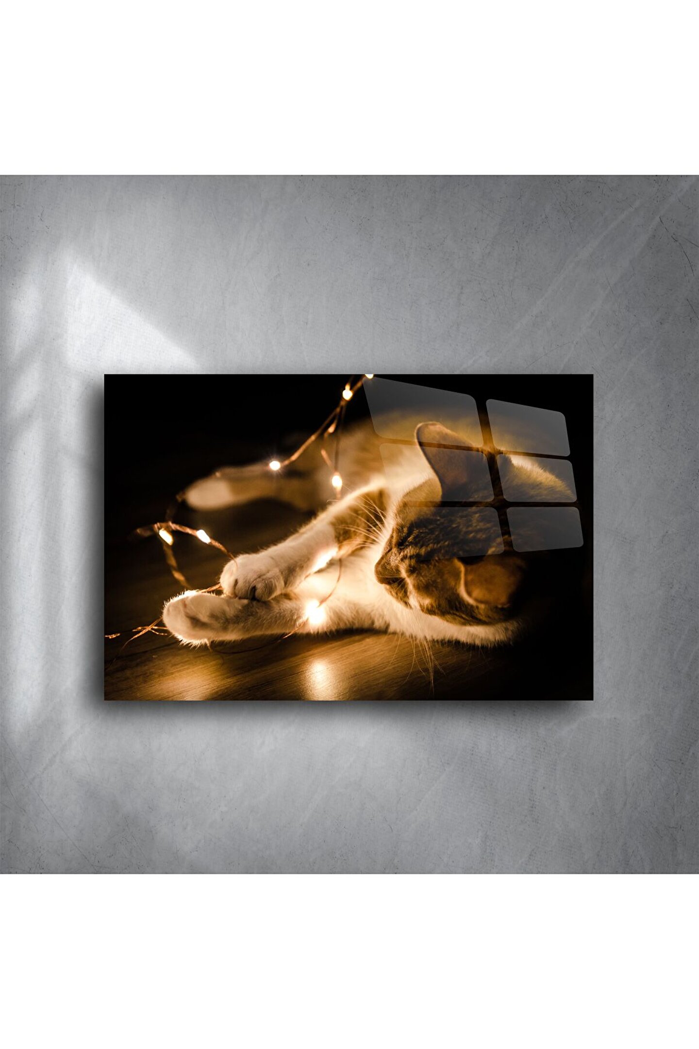 LEYLASER Işıklarla Oynayan Kedi Cam Tablo