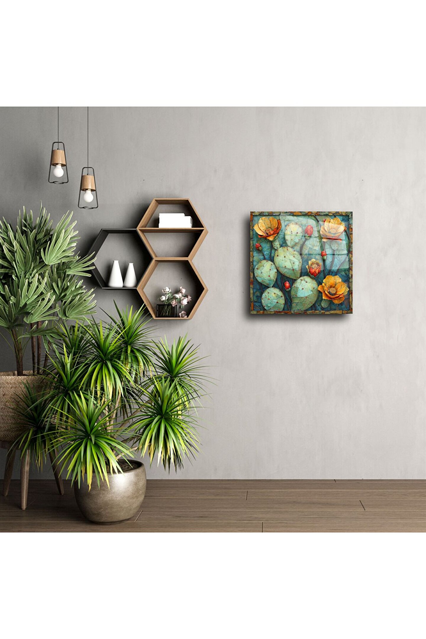 Doğanın doğal formlarından ilham alan bu kaktüs desenli cam tablo, yaşam alanlarınıza modern ve bohem bir ruh katıyor. Özenle yerleştirilmiş yeşil tonlarındaki yapraklar ve sıcak tonlarda açan çiçekler, dikkat çekici bir vitray etkisi yaratıyor.