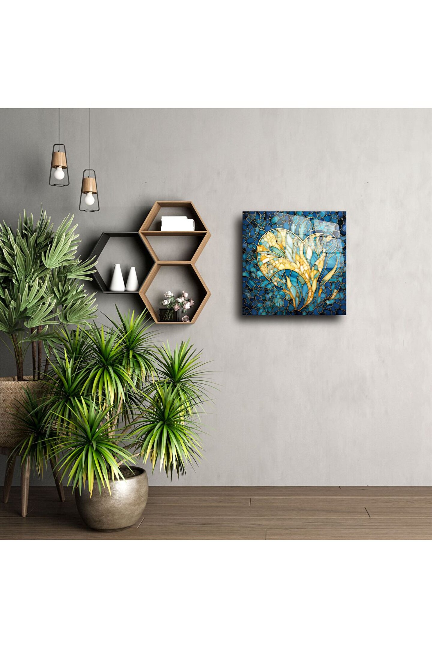 Aşkın ve sanatın birleştiği bu kalp desenli cam tablo, mavi ve altın tonların zarif uyumuyla evinizde duygusal bir atmosfer yaratır. Işıkla bütünleşen vitray efektli yapısı, romantizmi ve zarafeti aynı anda yansıtır.