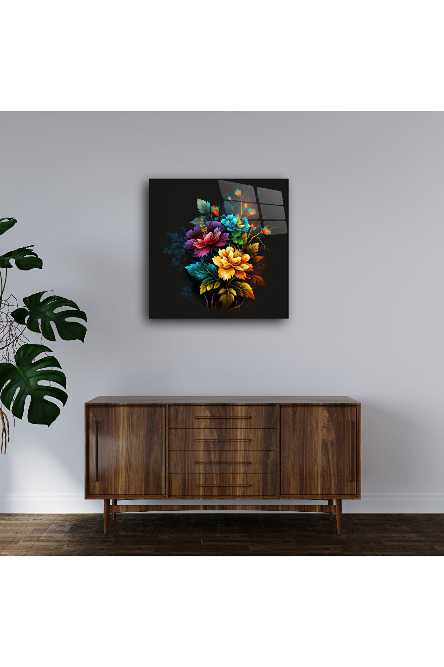 LEYLASER Karışık Renkli Çiçekler Cam Tablo Duvar Dekoru