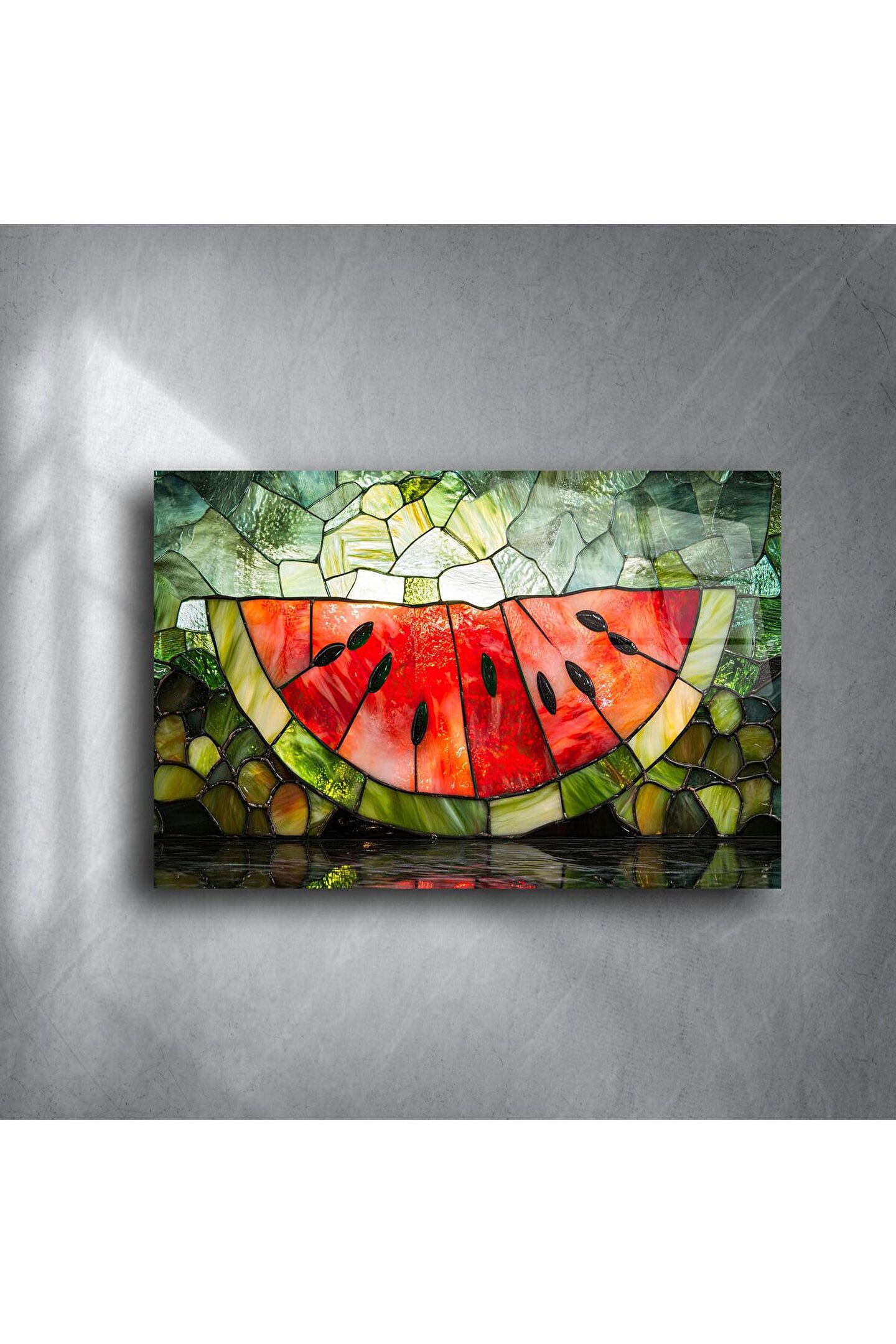 Yazın tazeliğini ve neşesini duvarlarınıza taşıyan bu Karpuz Dilimi temalı vitray cam tablo, yeşilin ve kırmızının canlı tonlarıyla ortama doğal bir ferahlık katıyor. Gerçek cam üzerine vitray etkili baskısıyla yazlık evlerin vazgeçilmez dekoratif parçası olmaya aday.