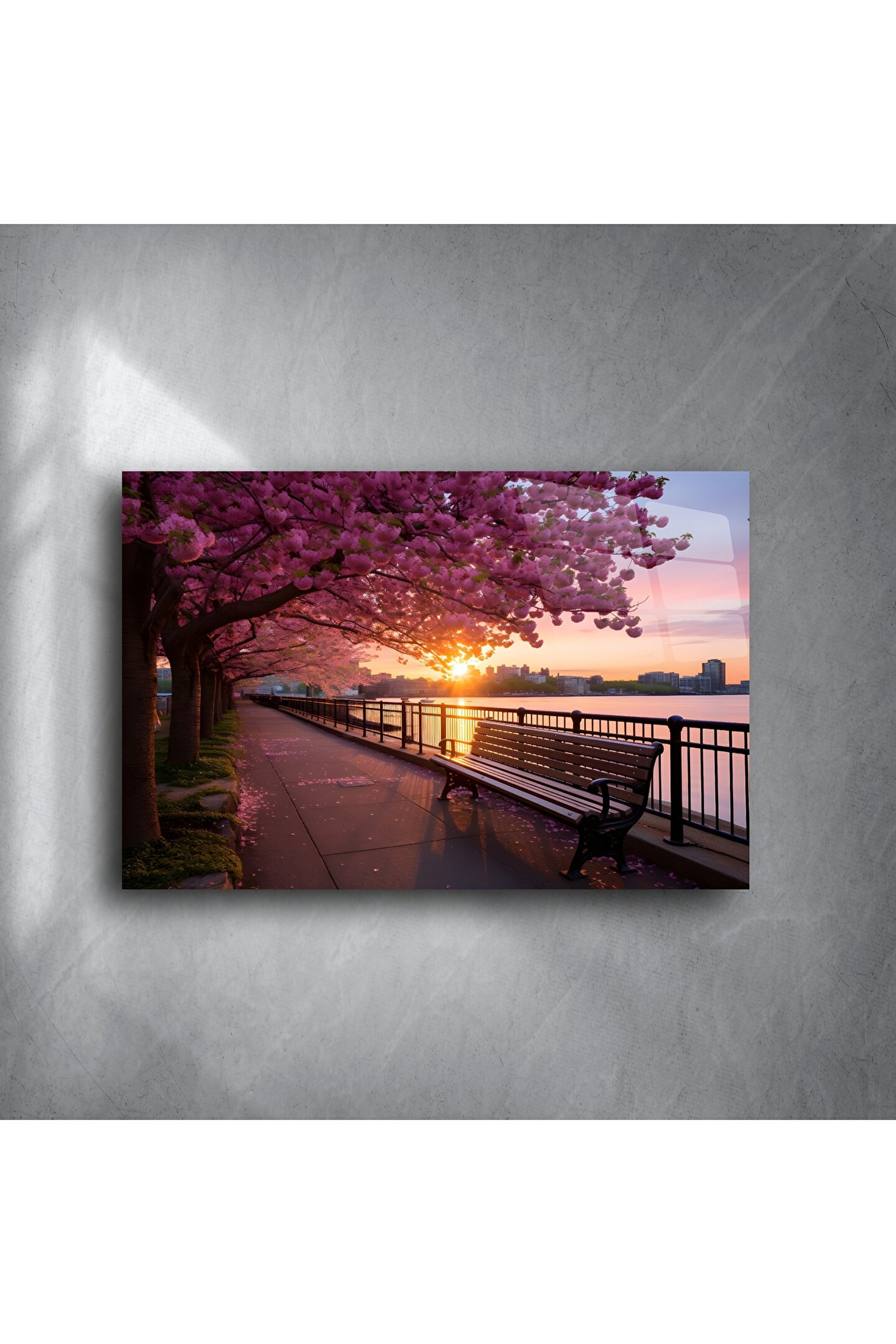 • Bu etkileyici kiraz çiçeği gün batımı park bankı kanvas tablosu ile yaşam alanınıza huzur, renk ve dinginlik katın. Sakura ağaçlarının yumuşak pembe tonları, gün batımında sakin bir sahil yolunu süslerken; bu sahne, müze kalitesinde bir baskı ile ölümsüzleştirildi.