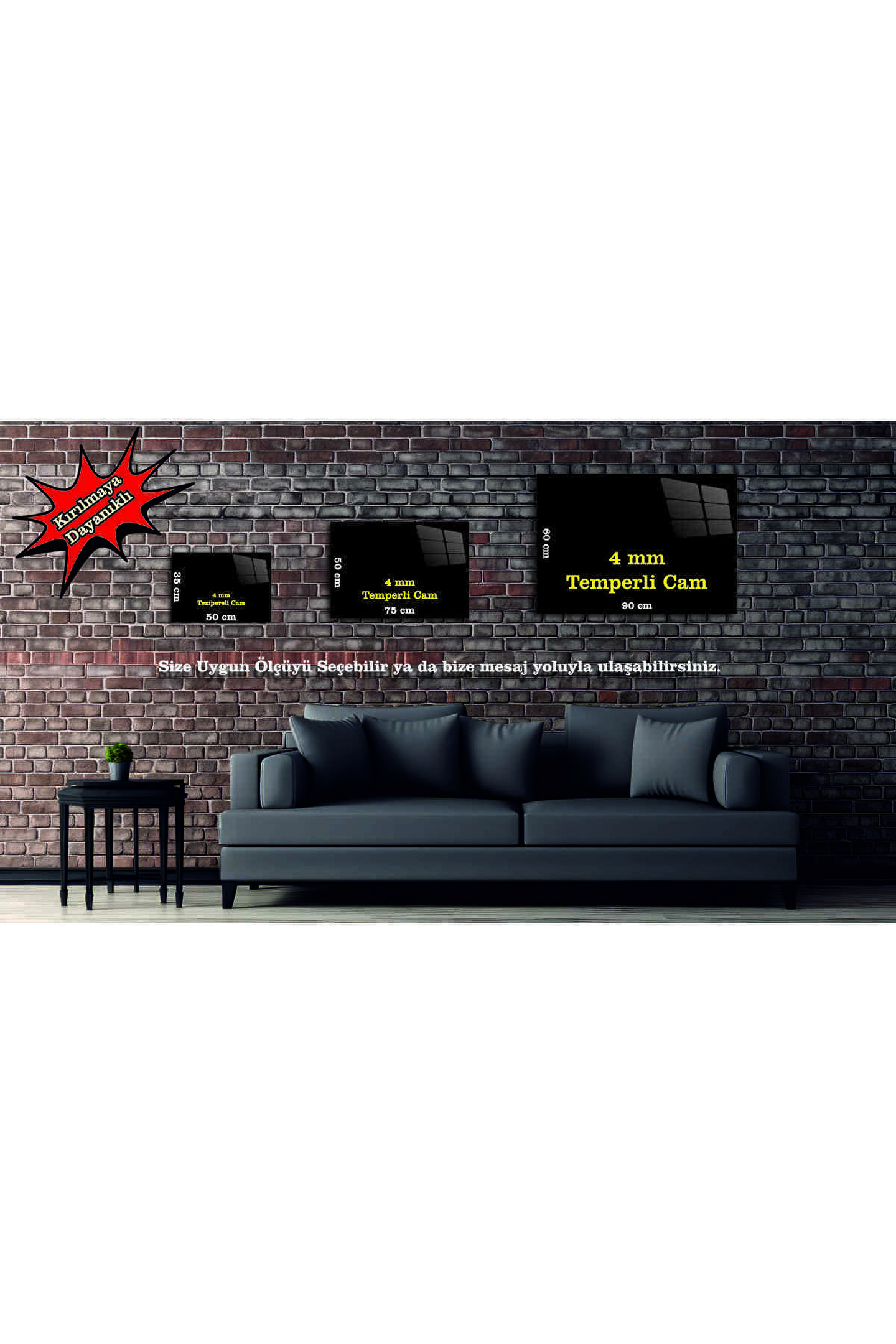 Trendyol.com'da satışa sunduğumuz bu özgün tasarımlı "Kişiye Özel Resimli Renkli Baskı Cam Tablo Duvar Dekoru", ev ya da ofisinizde hem size özel bir hava katarken hem de dekorasyonunuza modern bir dokunuş kazandıracaktır. Çocuğunuzun resmini veya fotoğrafını, çocuğunuzun yaptığı resmi, kendi yaptığınız resmi, yapay zeka ile oluşturduğunuz tasarımı, aile resminizi ya da fotoğrafınızı, özel gününüzden bir fotoğrafı kalıcı hale getirmek için bizi tercih edebilirsiniz. Bu duvar tablosu, 4 mm kalınlığında kırılmaya dayanıklı temperli camdan üretilmiştir. Kişiye özel fotoğraflarınızı kullanarak özel bir tablo tasarlamaktayız. Kişiye özel cam tablo kategorisinde, kendine yer bulan bu tablo, her türlü mekana çarpıcı bir görünüm kazandırır. ÖNEMLİ NOT: Lütfen baskısını yaptıracağınız resim ya da fotoğrafların çözünürlüğünün yüksek olmasına dikkat ediniz. ; Baskısını yaptıracağınız resmi veya fotoyu ---- www hizliresim com ---- adresine yükleyip, oluşturduğunuz linki kopyalayıp, trendyol ürün sorularından SİPARİŞ NUMARANIZ ile birlikte bizimle paylaşmanız gerekmektedir. ; Tablo, duvar tablosu, tablo modelleri, duvar tablo, cam tablo, salon duvar tablosu, trendyol tablo, kişiye özel tablo, dekoratif tablo, kişiye özel cam tablo, temperli cam tablo, duvar süsü, ev dekorasyonu, duvar dekoru Modern ve şık dizaynı ile göz doldurur. ; Kişiye özel tasarımı ile benzersiz bir hediye alternatifi oluşturur. ; 4 mm temperli cam malzemesi, dayanıklı ve uzun ömürlü bir kullanım olanağı sunar. ; Kırılmaya ve çizilmeye karşı dayanıklıdır. ; Kolay montajı sayesinde her türlü duvar yüzeyinde rahatça kullanabilirsiniz. ; Değişken boyut seçenekleri ile her mekana uyum sağlar. ; Tasarımı ile ev, ofis, kafe gibi yerlerde göz alıcı bir duvar süsü niteliğindedir. ; Evinizin dekorasyonuna modern ve özgün bir hava katarak, yaşam alanlarınızı güzelleştirir. ; Şık tasarımı ve dayanıklı yapısı ile "Kişiye Özel Resimli Renkli Baskı Cam Tablo Duvar Dekoru"nu Trendyol.com'da kesinlikle kaçırmayın!