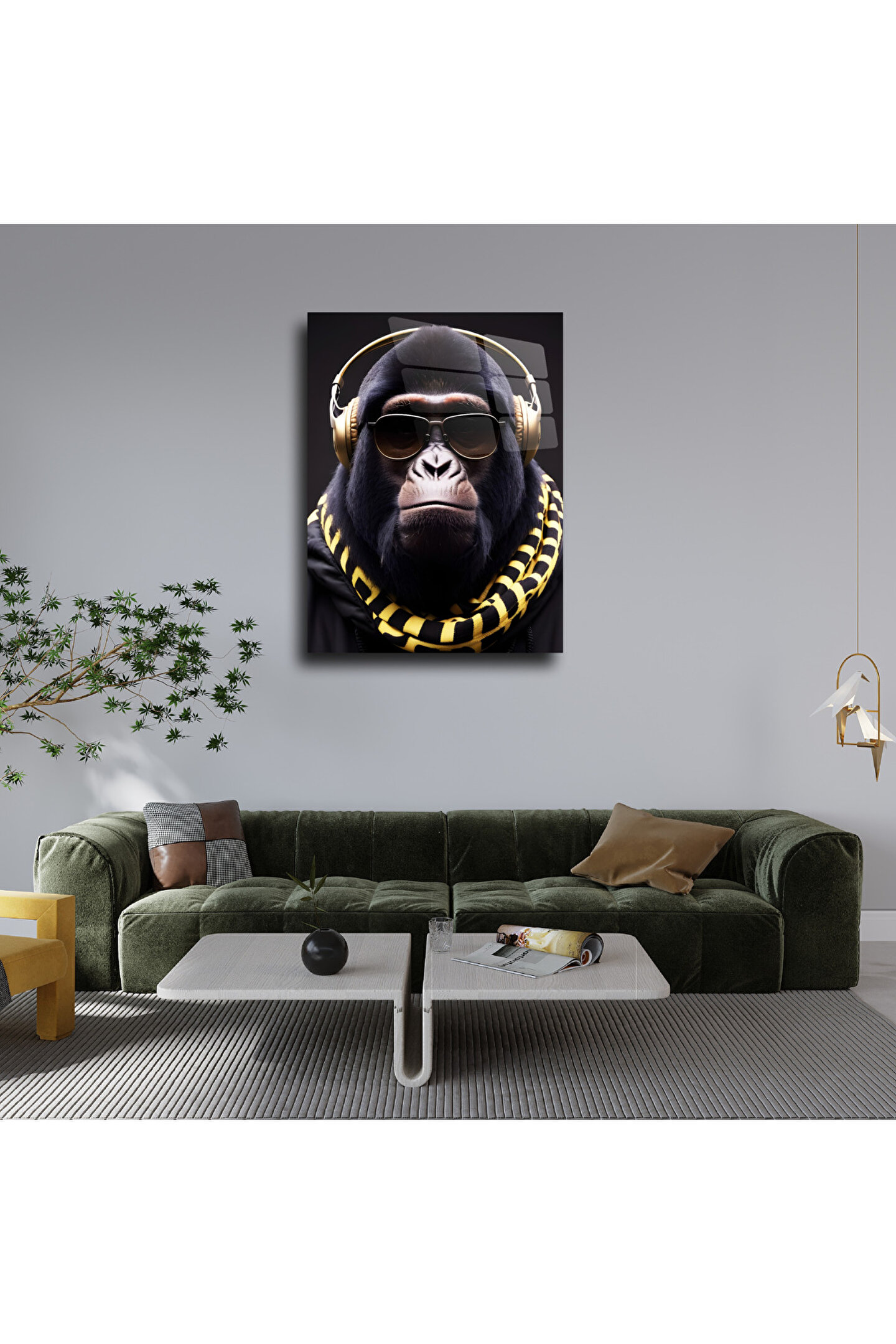 LEYLASER Kulaklıklı Goril Cam Tablo Duvar Dekoru