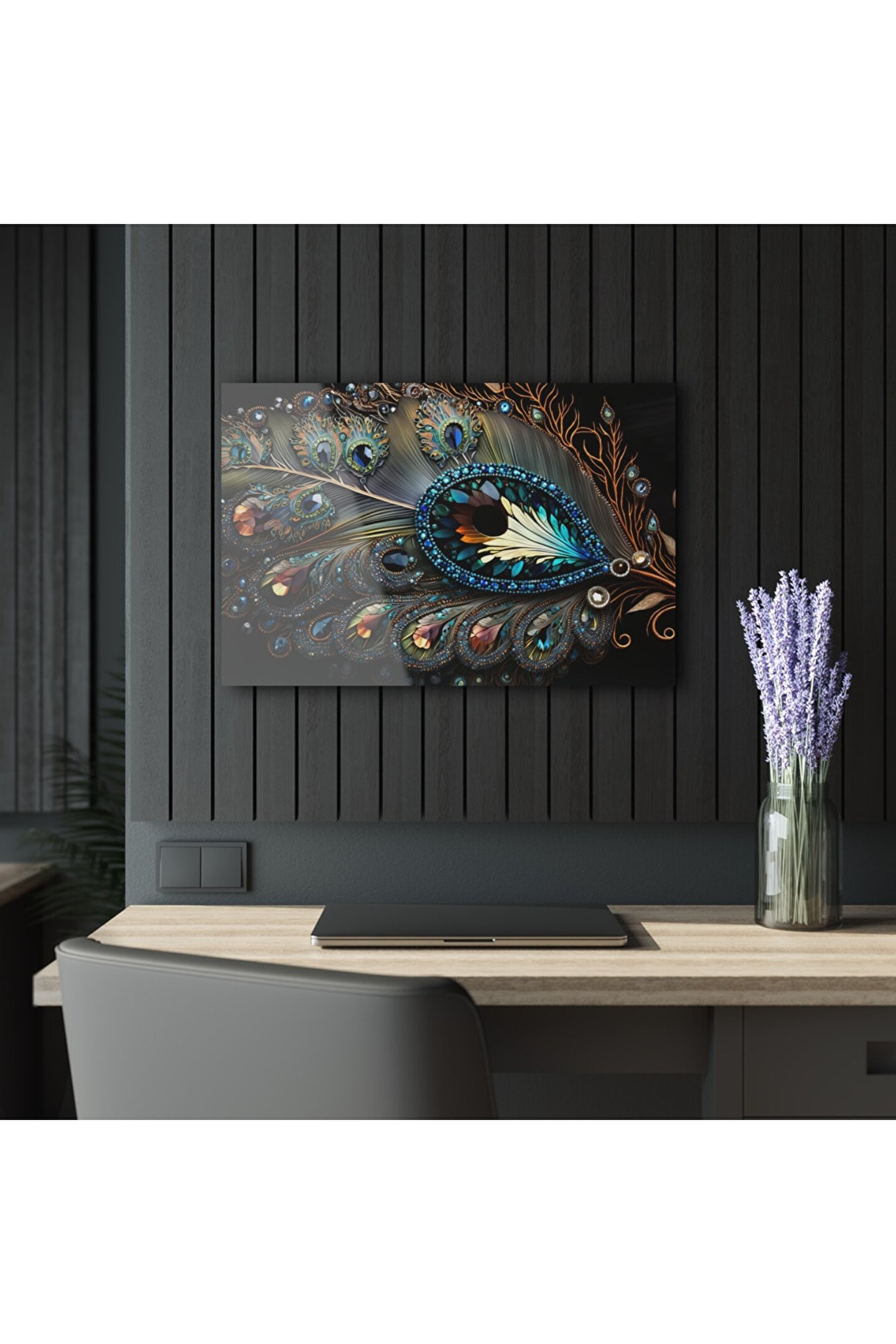 LEYLASER Kuş Tüyü Cam Tablo Duvar Dekoru