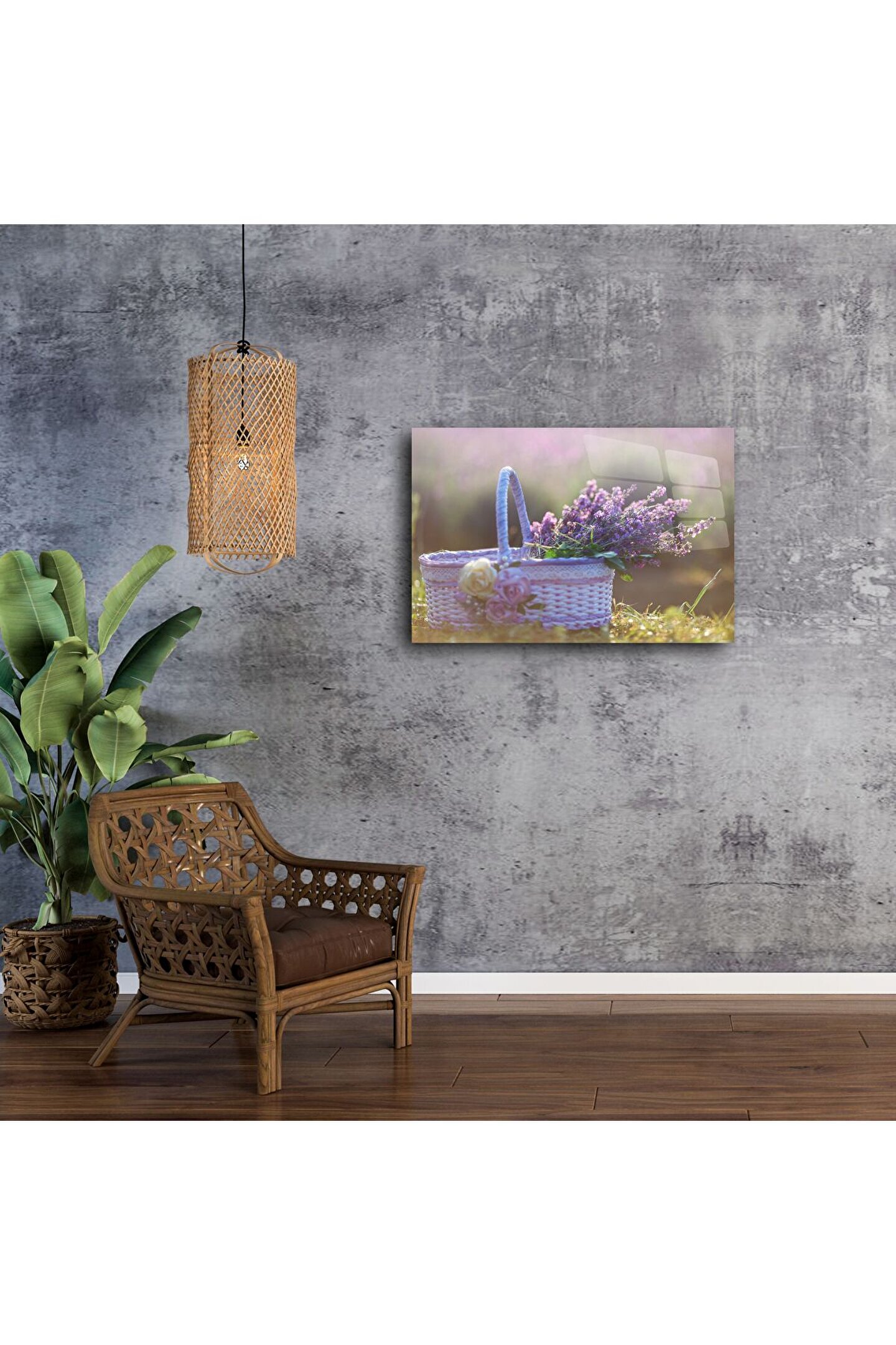 Bu zarif lavanta sepeti duvar tablosu, pastel morun yumuşak tonlarıyla romantik bir bahar esintisi sunar. İnce detaylarla işlenmiş bu fotoğrafik baskı, huzur verici bir doğa anını yakalarken, vintage dokusuyla da nostaljik bir atmosfer yaratır.
