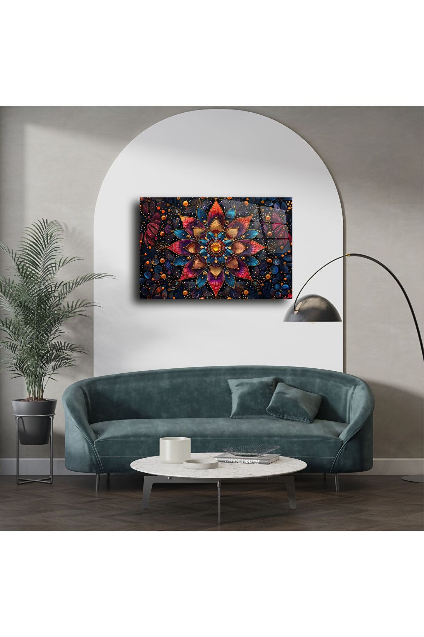 LEYLASER Mandala Desenli Renkli Cam Duvar Tablosu