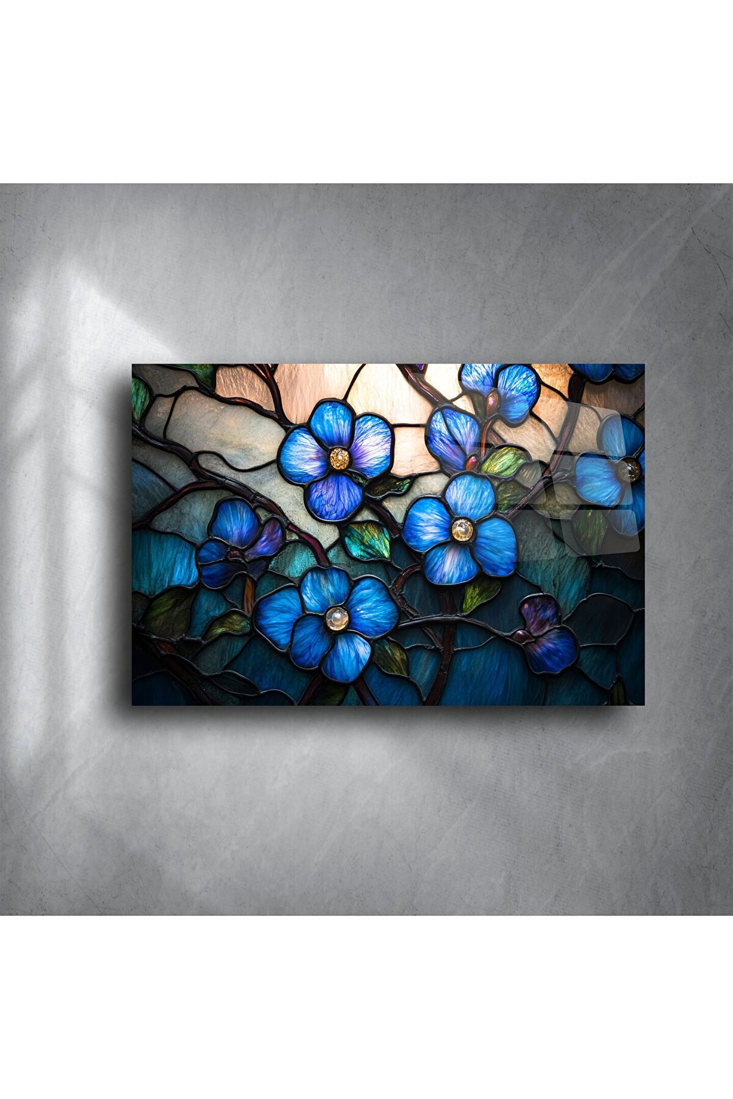 Zarif çizgileri ve canlı mavi tonlarıyla dikkat çeken bu vitray cam tablo, doğanın huzurunu duvarlarınıza taşır. Işığın dans ettiği cam yüzeyde, çiçek detayları 3 boyutlu etkisiyle derinleşir ve sanatı adeta canlı bir deneyime dönüştürür.