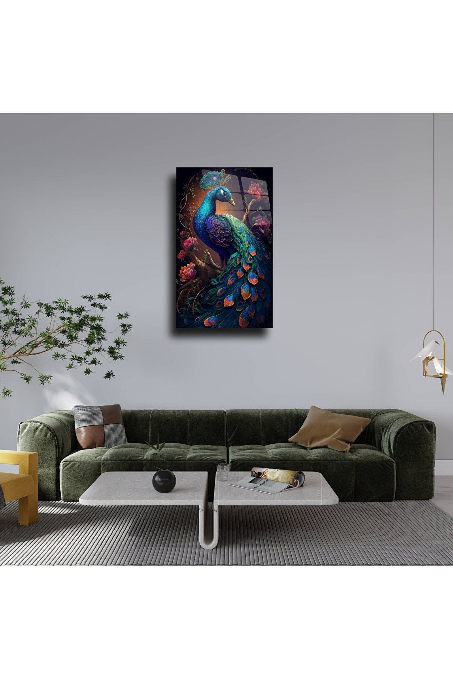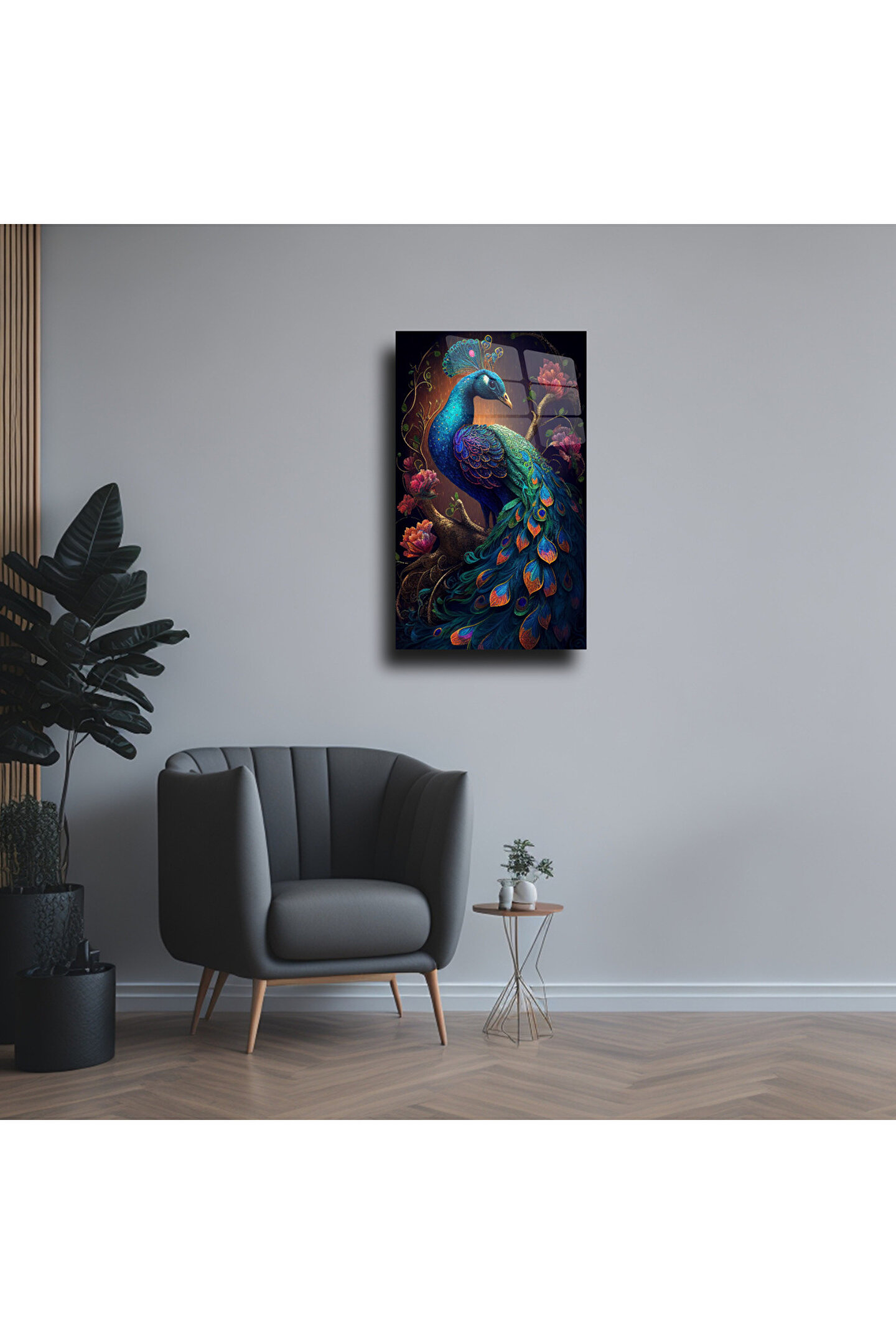 LEYLASER Mavi Tavus Kuşu Cam Tablo Duvar Dekoru