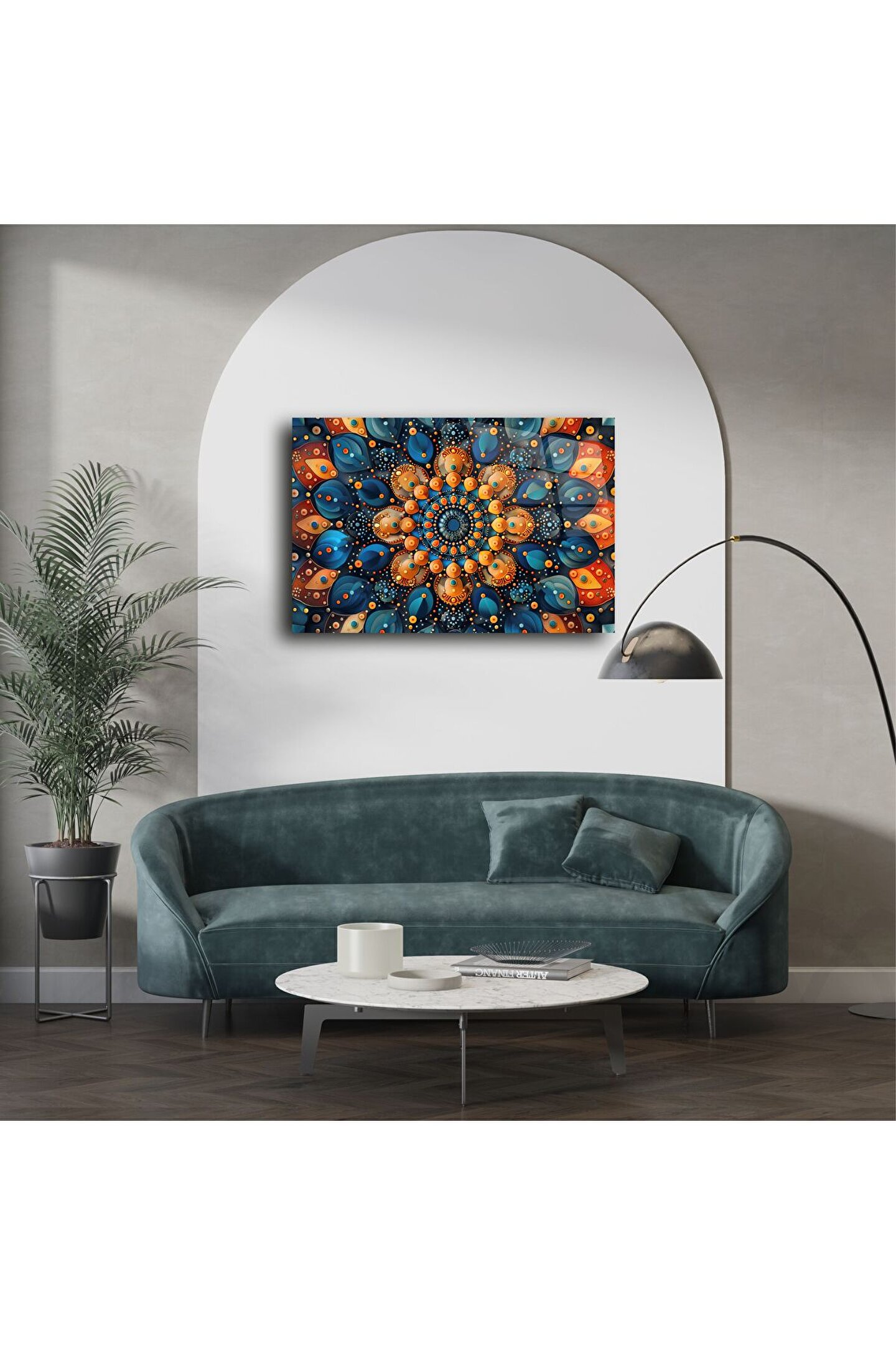 Her bakışta ortamınızın enerjisi değişecek. Karmaşık dairesel desenleri ve canlı kontrastları, netlik, odaklanma ve iç huzuru teşvik eder — ruh halinizi yükseltir ve mekanınıza spiritüel bir dokunuş katar. İster huzurlu bir alan yaratın ister yaşam alanınıza ruh katın, bu parça göz alıcı bir odak noktasıdır.