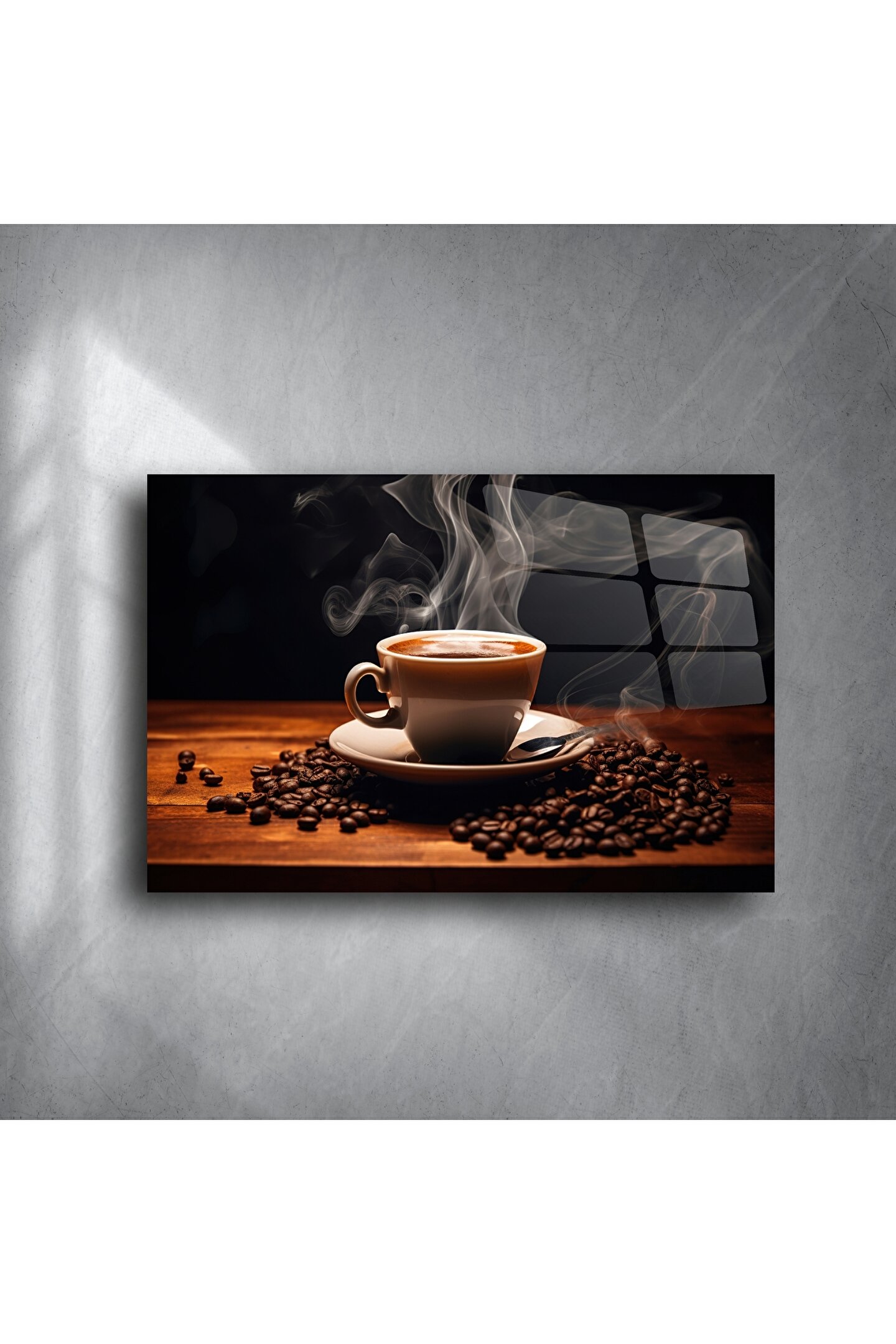 Kahve tutkusunu derin ve sanatsal bir anlatımla sunan bu Minimalist Kahve Temalı Cam Duvar Tablosu, yoğun buharlı espresso fincanı ve kahve çekirdekleriyle güçlü bir atmosfer yaratıyor. Loş fon üzerindeki bu kontrastlı sahne, modern mutfaklar, kahve barları ve butik kafeler için mükemmel bir odak noktasıdır.