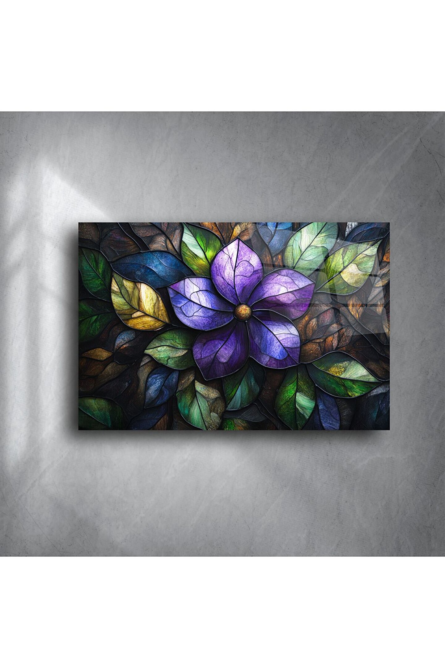 Canlı renklerle bezenmiş bu mor çiçek desenli cam tablo, doğanın zarafetini ve huzurunu yaşam alanınıza taşıyor. Derinliği artıran 3D görsel efekt ve zengin yaprak tonları, iç mekânınıza benzersiz bir karakter ve sofistike bir dokunuş katıyor.