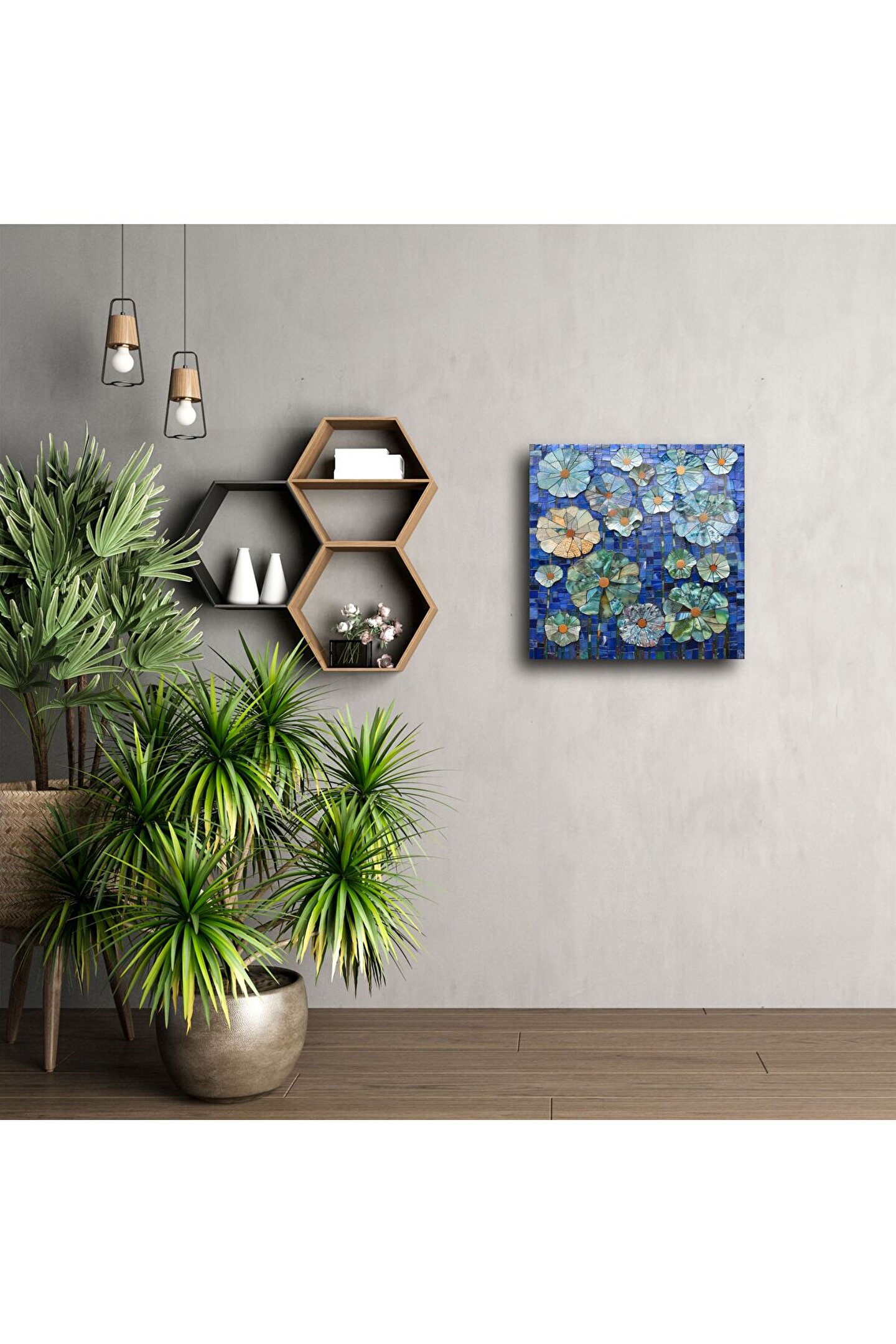 Doğanın huzurunu sanatla buluşturan bu mavi çiçek desenli mozaik cam tablo, yaşam alanlarınıza taze bir nefes ve zarafet katıyor. Cam parçacıklarının titizlikle bir araya getirildiği bu el işçiliği sanat eseri, her bakışta yeni bir detay sunan benzersiz bir estetik sunar.