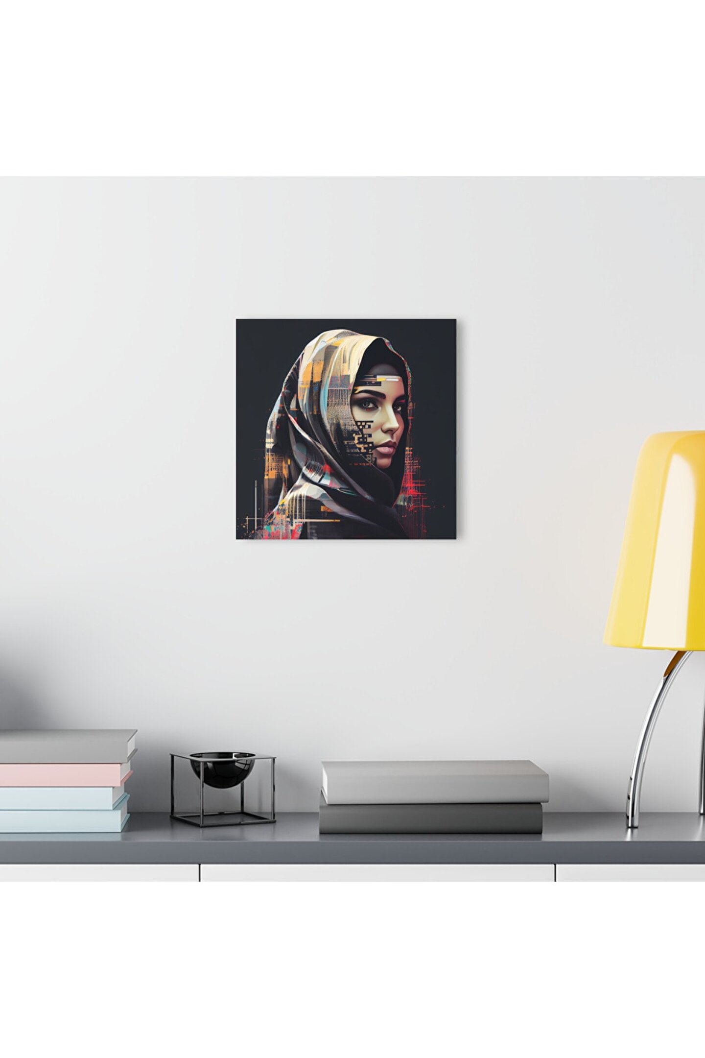 LEYLASER Müslüman Kız Sulu Boya Türban Başörtüsü İslam Cam Tablo Duvar Dekoru 2