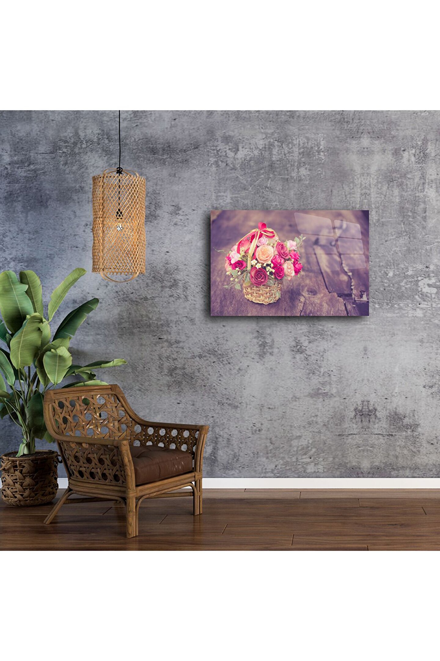 Bu romantik vintage çiçek sepeti posteri, yumuşak pembe ve pastel tonlarındaki güllerle kalbinize dokunur. Sepetin zarafeti ve arka planın rustik ahşap dokusu nostalji ve huzur hissi uyandırır.