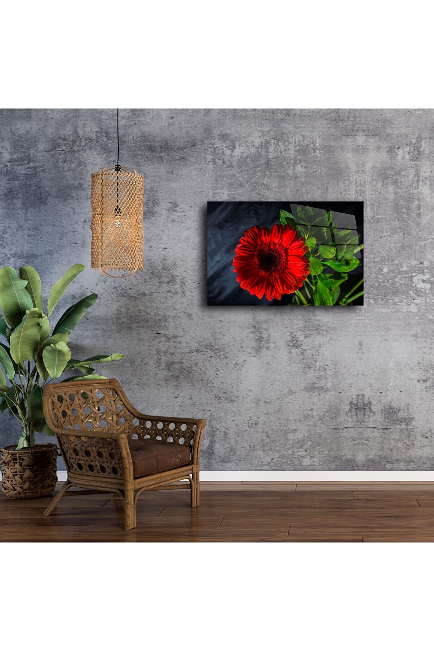 Doğanın güçlü enerjisini evinize taşıyın. Kırmızı gerbera çiçeğinin canlı detaylarıyla öne çıkan bu parlak cam tablo, yaşam alanlarınıza doğal zarafet ve modern dokunuş katıyor. Cam yüzeyin yüksek yansıtıcılığı ile ışığı büyüleyici şekilde yansıtır.