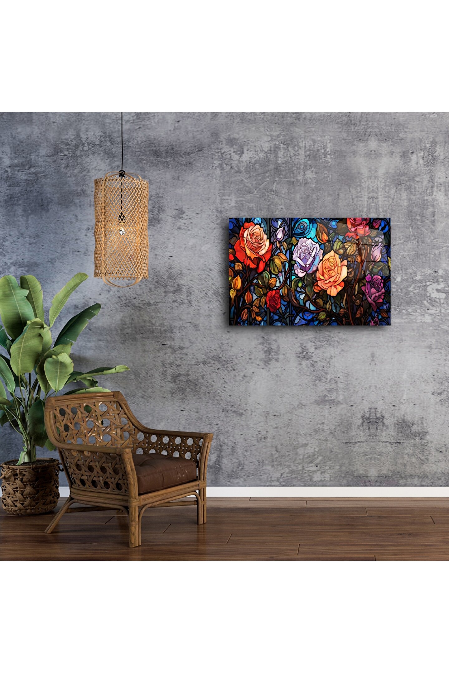 LEYLASER Renkli Çiçekli Gül Vitray Duvar Sanatı Paneli