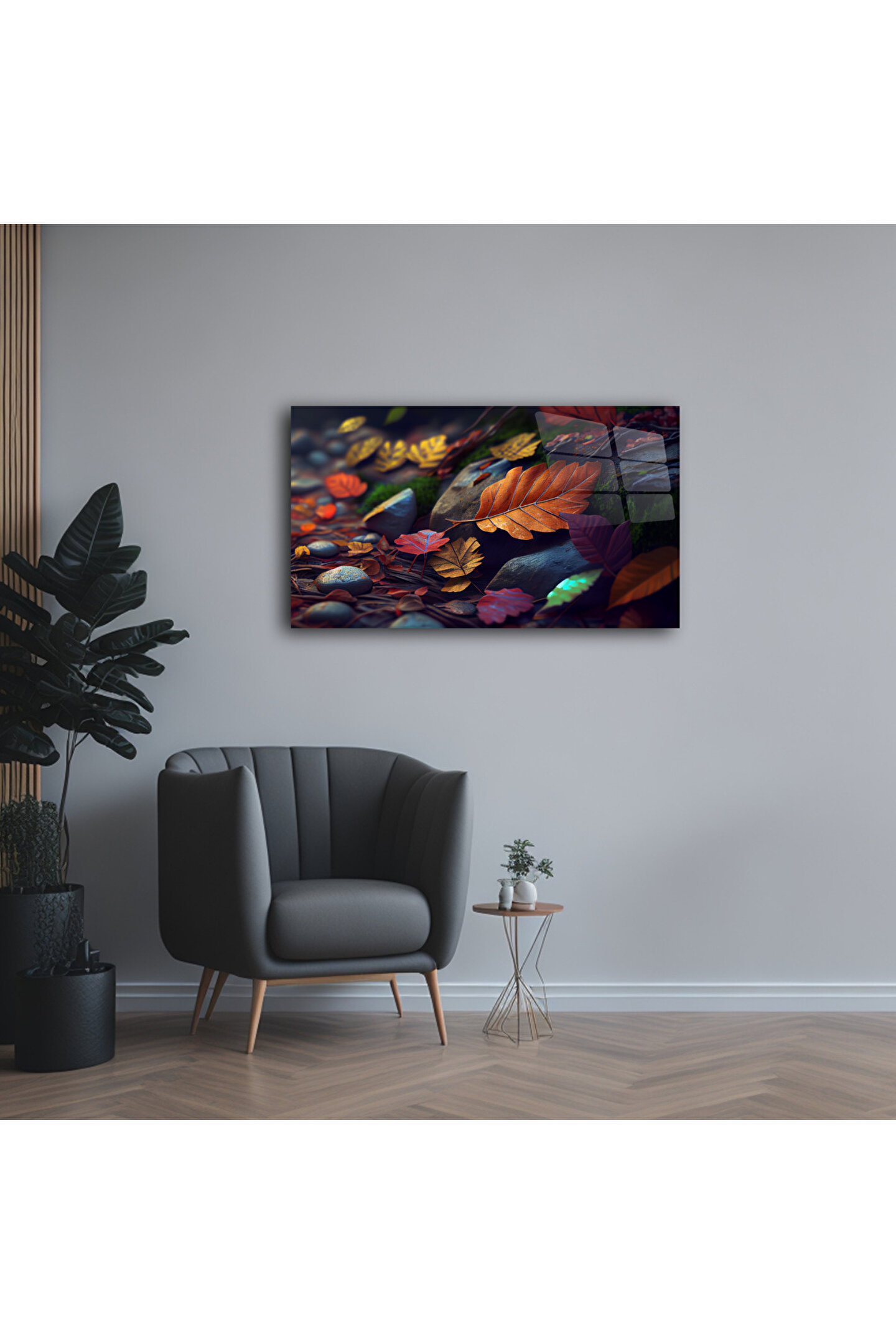 LEYLASER Renkli Yapraklar ve Taşlar Cam Tablo Duvar Dekoru