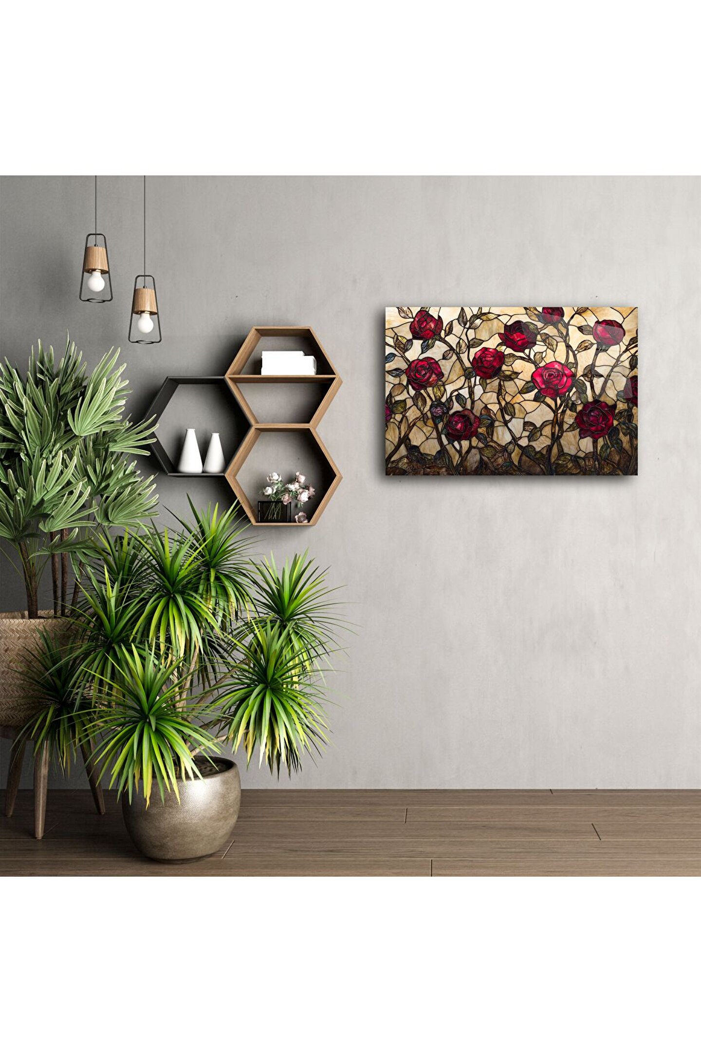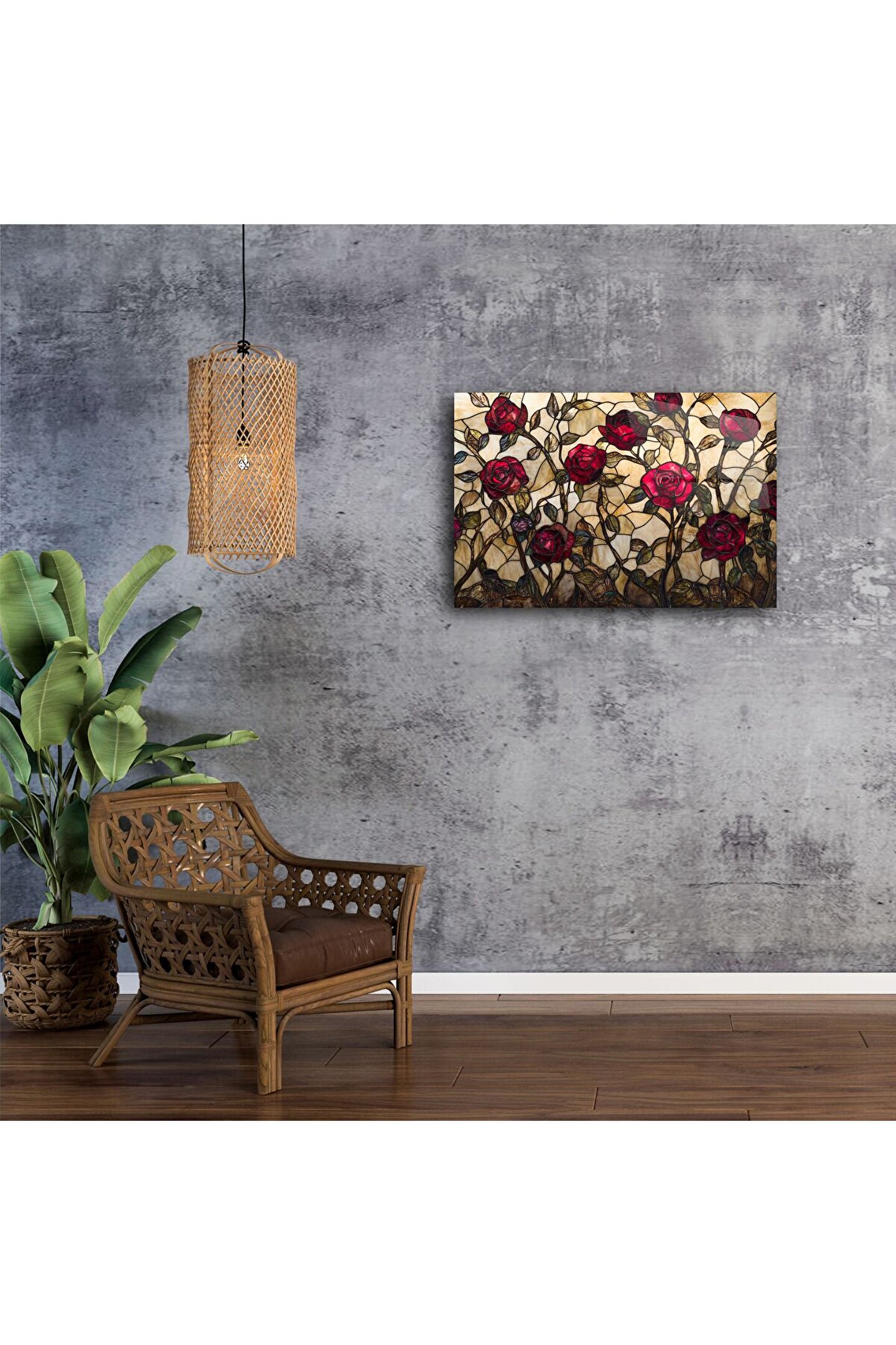 El yapımı vitray kırmızı gül cam tablo, doğanın romantik zarafetini evinizin duvarına taşır. Zengin kırmızı tonları, el işçiliğiyle işlenmiş cam parçalarla hayat bulur – aşkı, tutkuyu ve güzelliği simgeler.