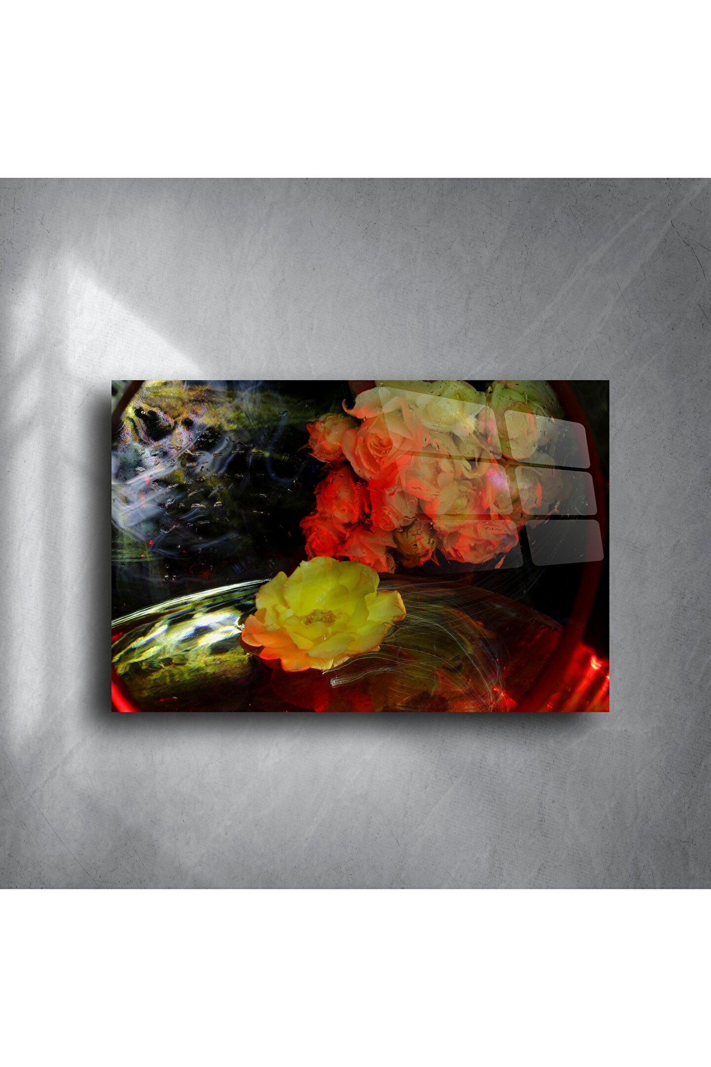 Bu etkileyici cam tablo, sarı ve kırmızı güllerin soyut ve derinlikli yansımalarıyla romantizmi modern sanatla buluşturuyor. Parlak cam yüzeyin sunduğu yüksek netlik ve renk canlılığı, çiçeklerin zarafetini duvara taşıyor.