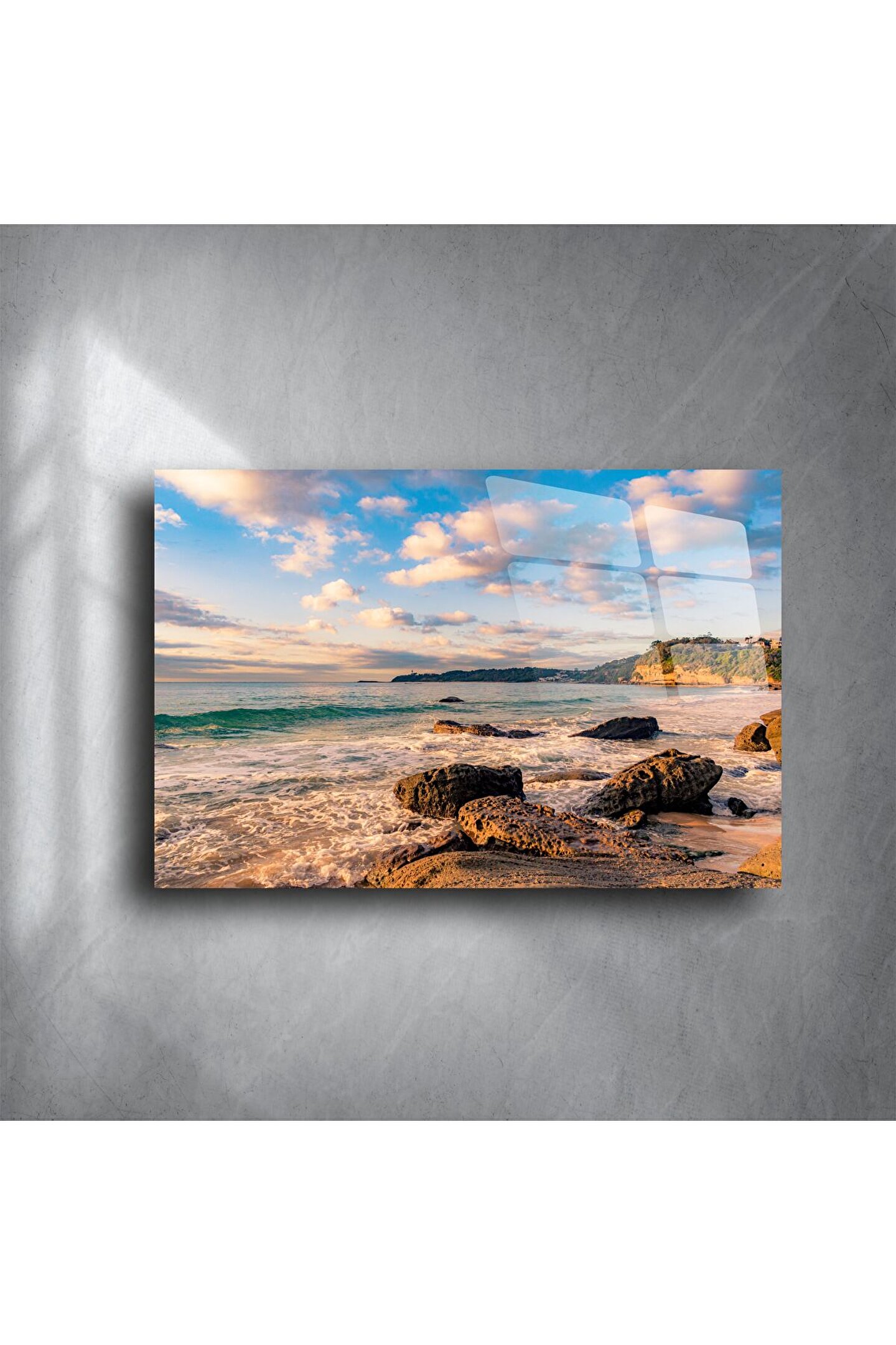 Serin renk tonlarıyla bezeli bu huzur verici deniz manzaralı cam tablo, evinize dinginlik ve zarafet katıyor. Cam yüzey üzerine yüksek çözünürlükle basılan plaj kompozisyonu, gün batımının yumuşak ışıkları ve suyun sakin dalga dokusuyla birleşiyor. Minimalist dekor stillerine uyumlu olan bu sanat eseri, modern iç mekanlara doğal bir nefes katar.