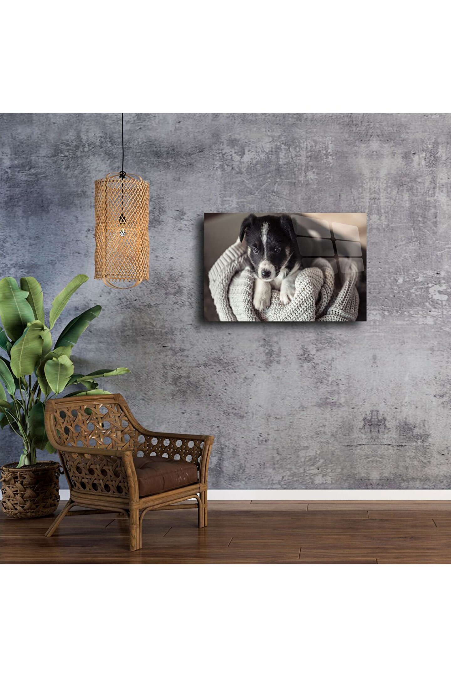 Bu cam üstü sevimli yavru köpek tablosu, hayvan sevgisini estetikle buluşturuyor. Canlı detaylarla dolu bu modern baskı, her baktığınızda içinizi ısıtacak ve yaşam alanınıza neşe katacak.