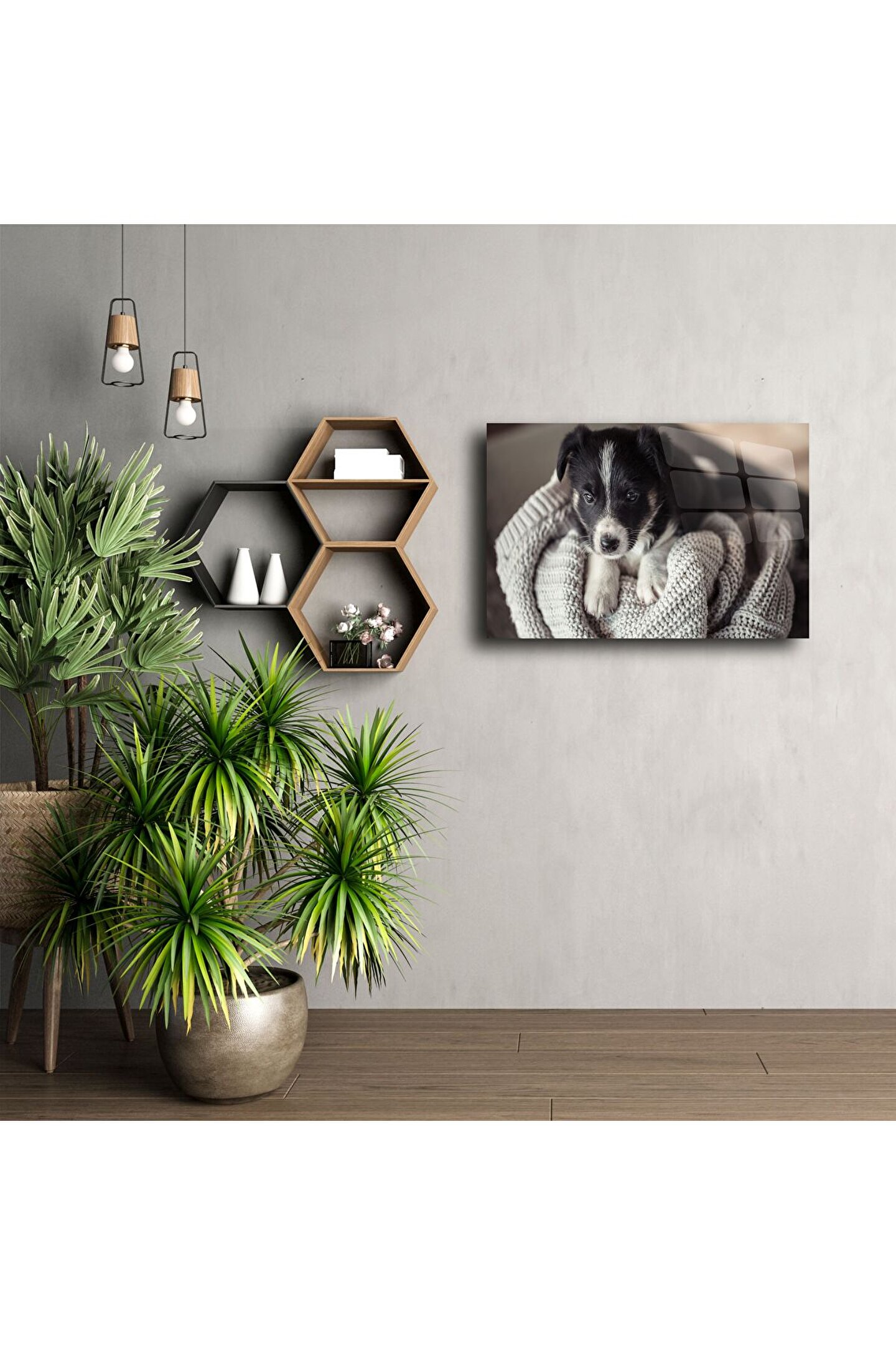 Bu cam üstü sevimli yavru köpek tablosu, hayvan sevgisini estetikle buluşturuyor. Canlı detaylarla dolu bu modern baskı, her baktığınızda içinizi ısıtacak ve yaşam alanınıza neşe katacak.