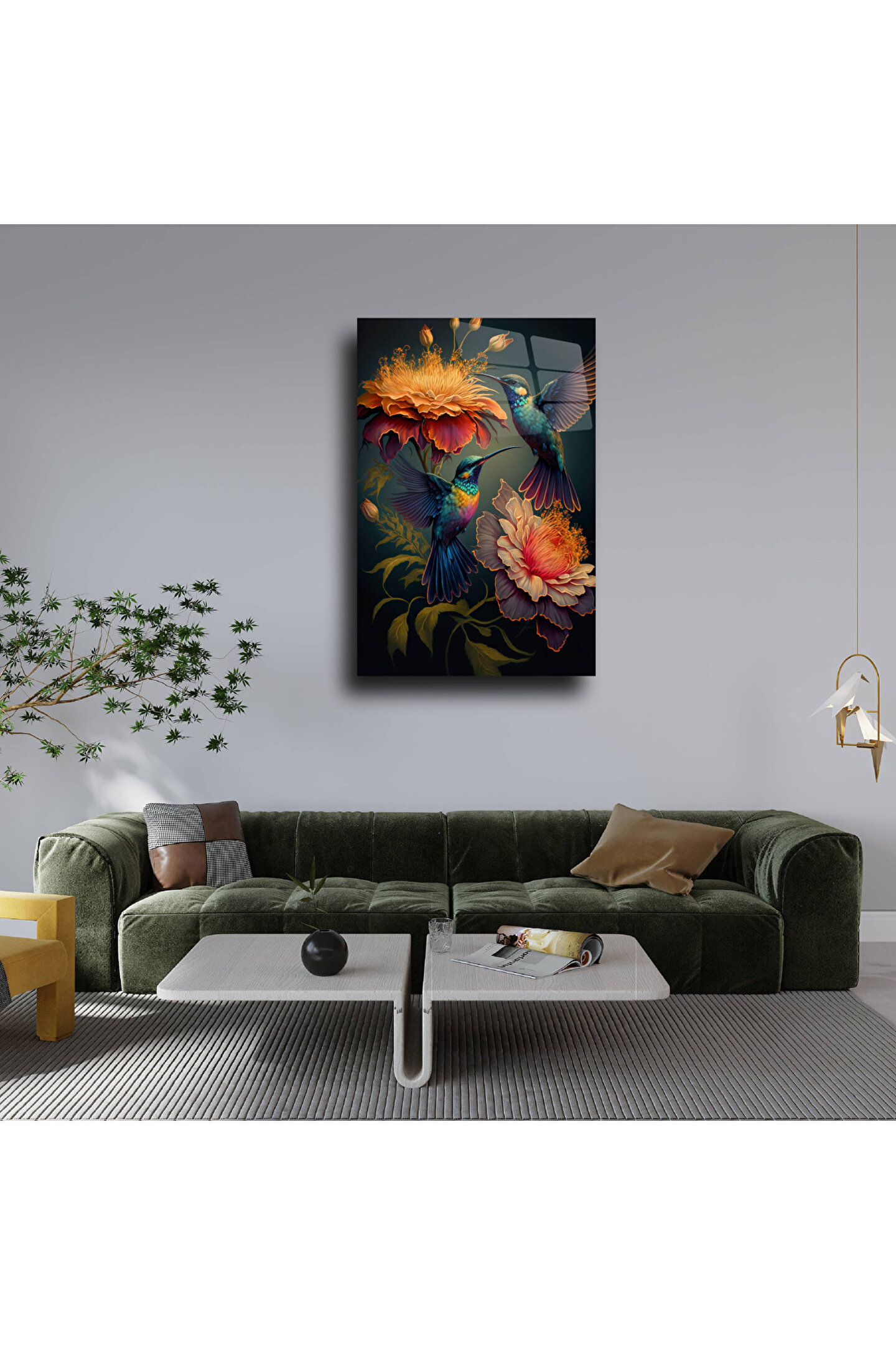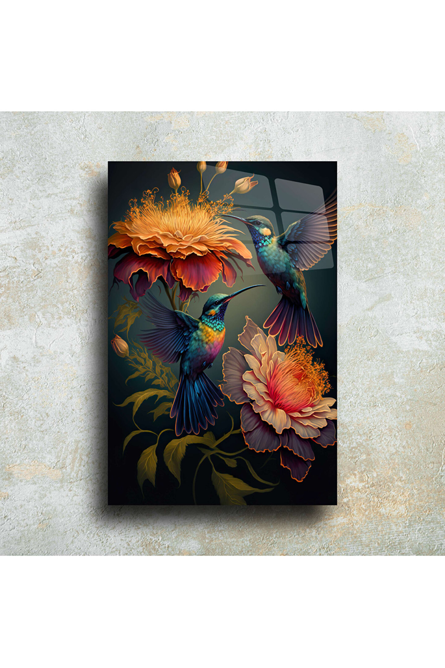 LEYLASER Sinek Kuşları ve Çiçekler Cam Tablo Duvar Dekoru