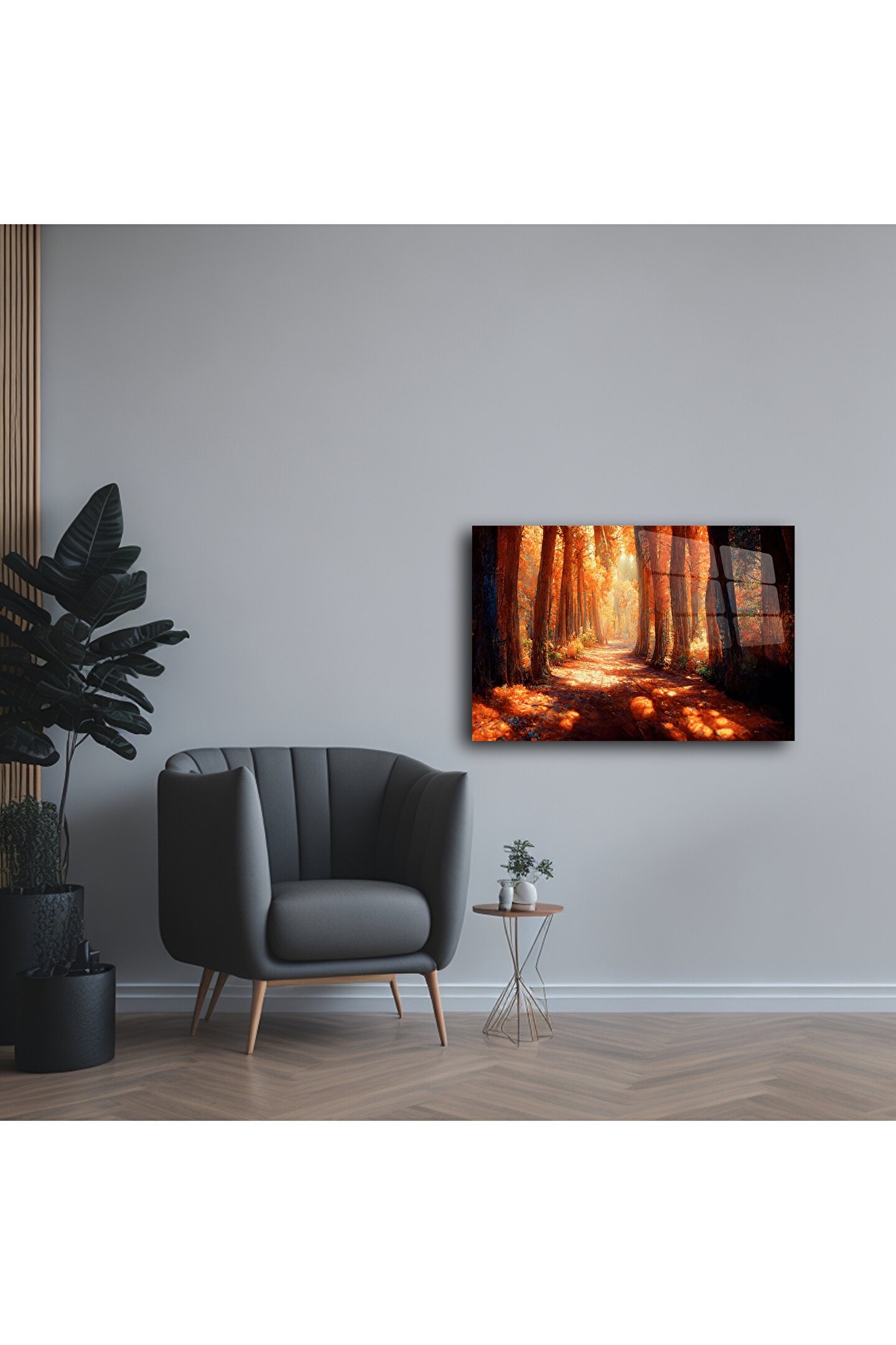 LEYLASER Sonbahar Orman Yolu Temalı Cam Duvar Tablosu