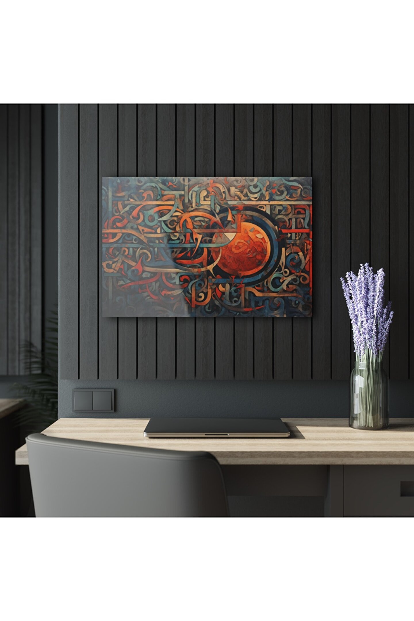 LEYLASER Sulu Boya Efektli Arapça Yazı Kuran-ı Kerim İslam Cam Tablo Duvar Dekoru 2